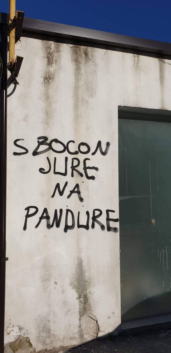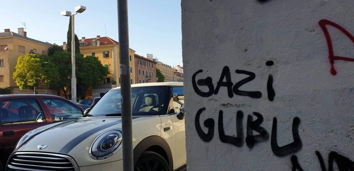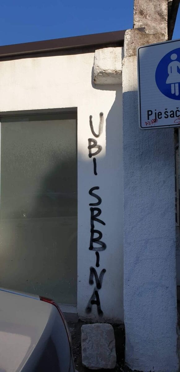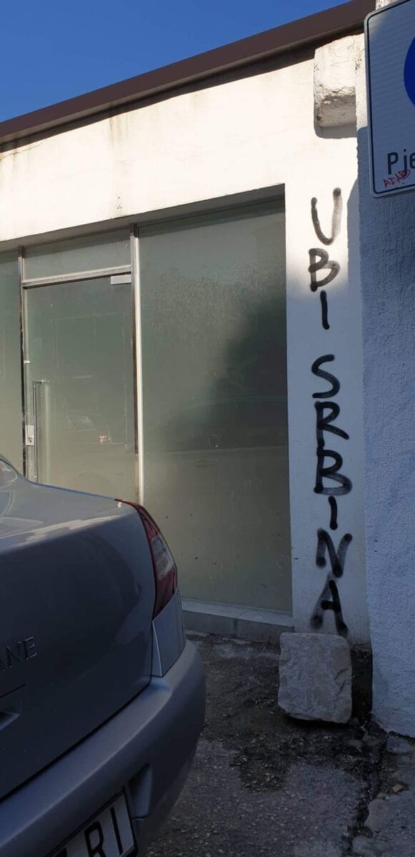 Najbolji primjer je parkiralište u centru grada u Svačićevoj, gdje huligani i ono malo prostora nagrđuju sramotnim natpisima kontra sustava, kontra policije, kontra Srba, a sve su začinili i s ustaškim i nacističkim znakovljem.