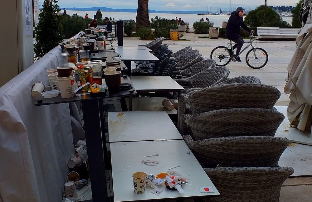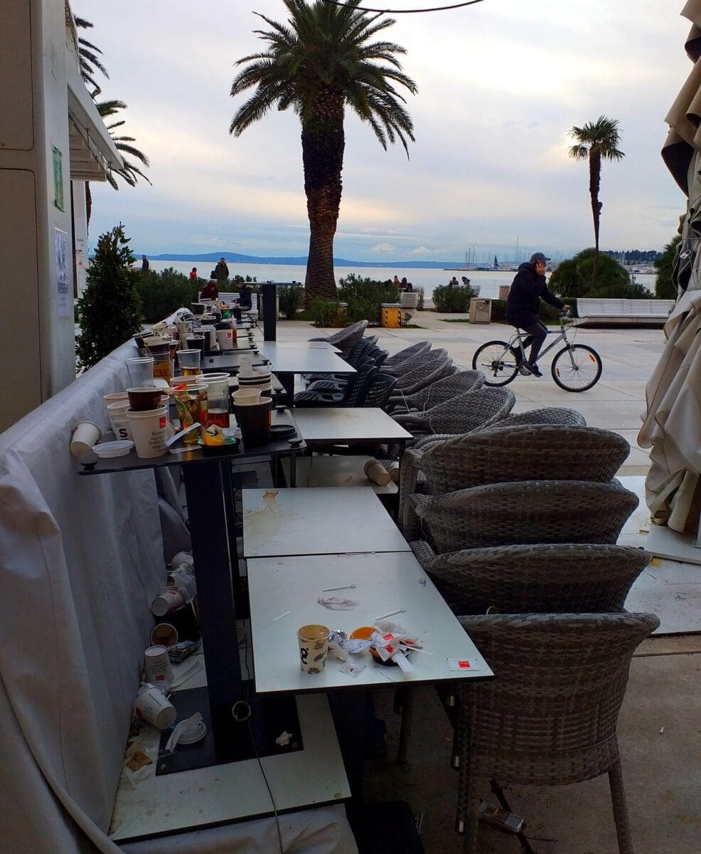 Ova fotografija to zorno prikazuje. Iako je mnogima bitno doći na Rivu, oni (nažalost) ne mare za smeće. Isto ostavljaju gdje god stignu i šalju lošu poruku, ili lošu sliku grada, kako želite.