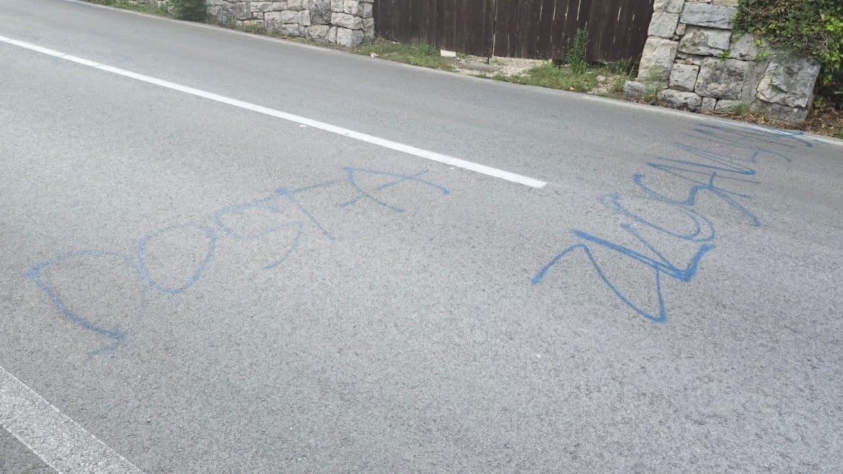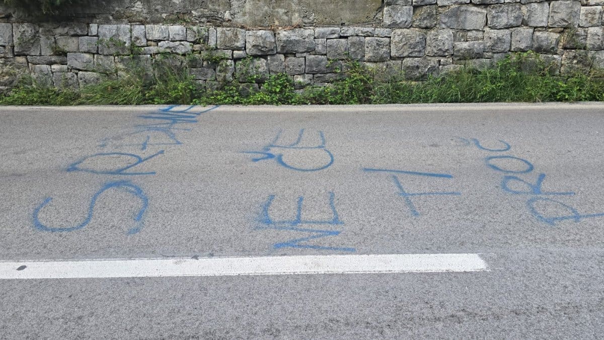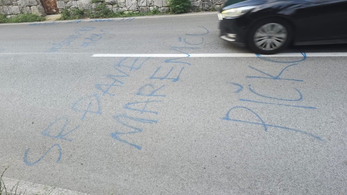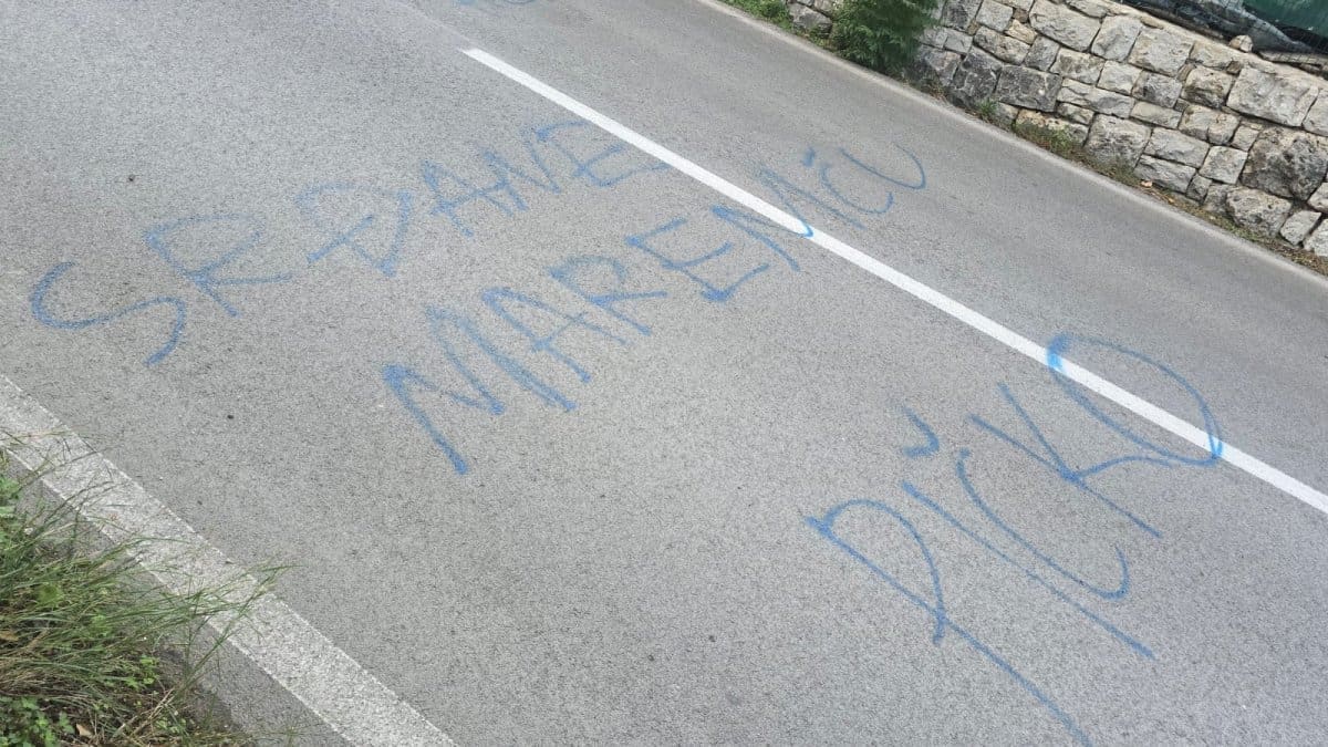 "Srđane neče ti proč", "Dosta zlostavljanja", "Marko Pejnoviću tko si ti?", "Ivoševiću p****", "Srđane p****", glase poruke napisane nasred ceste ispod Marjana.