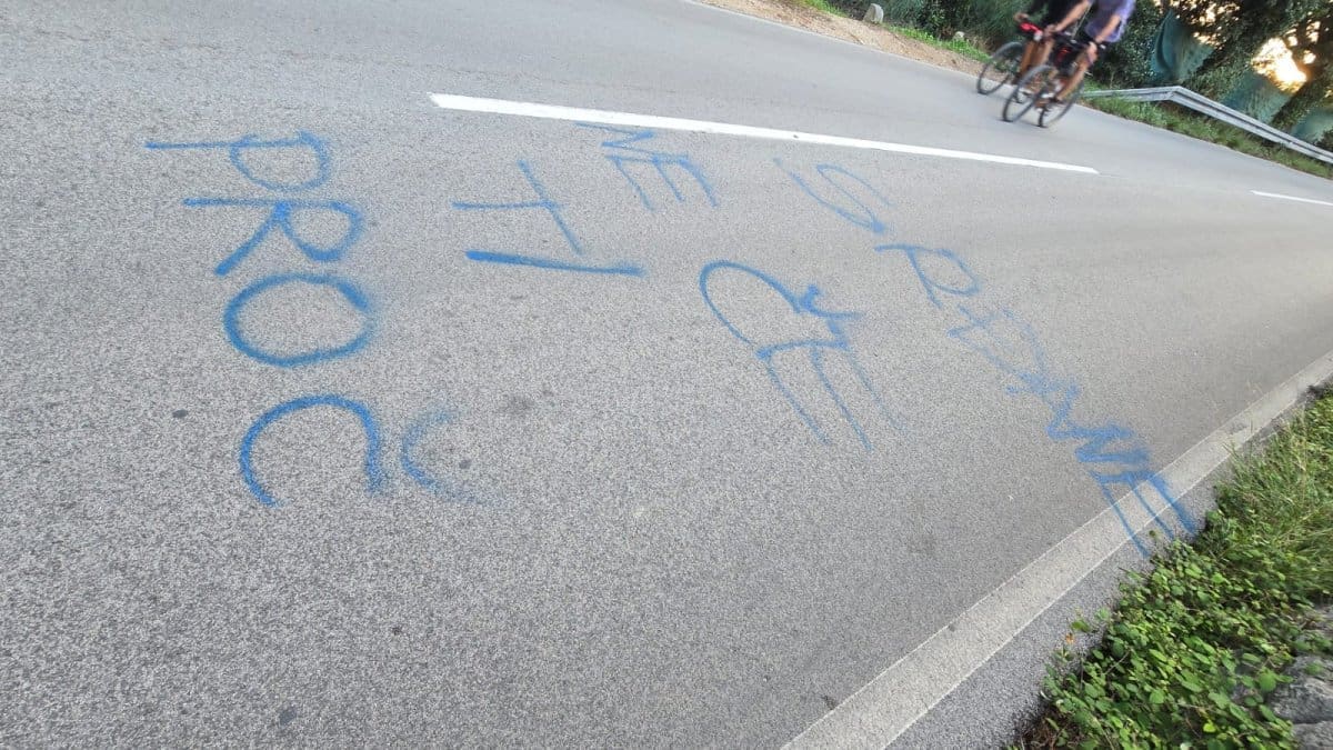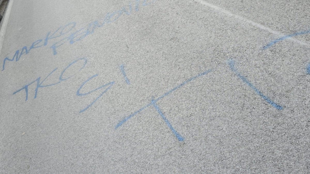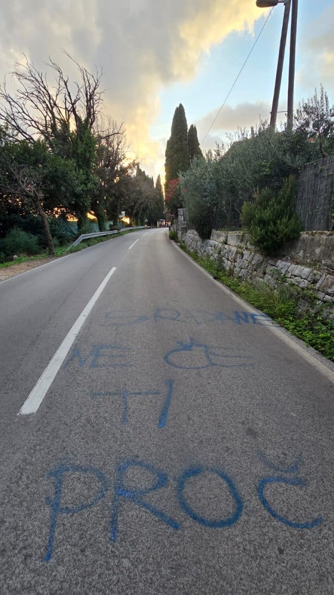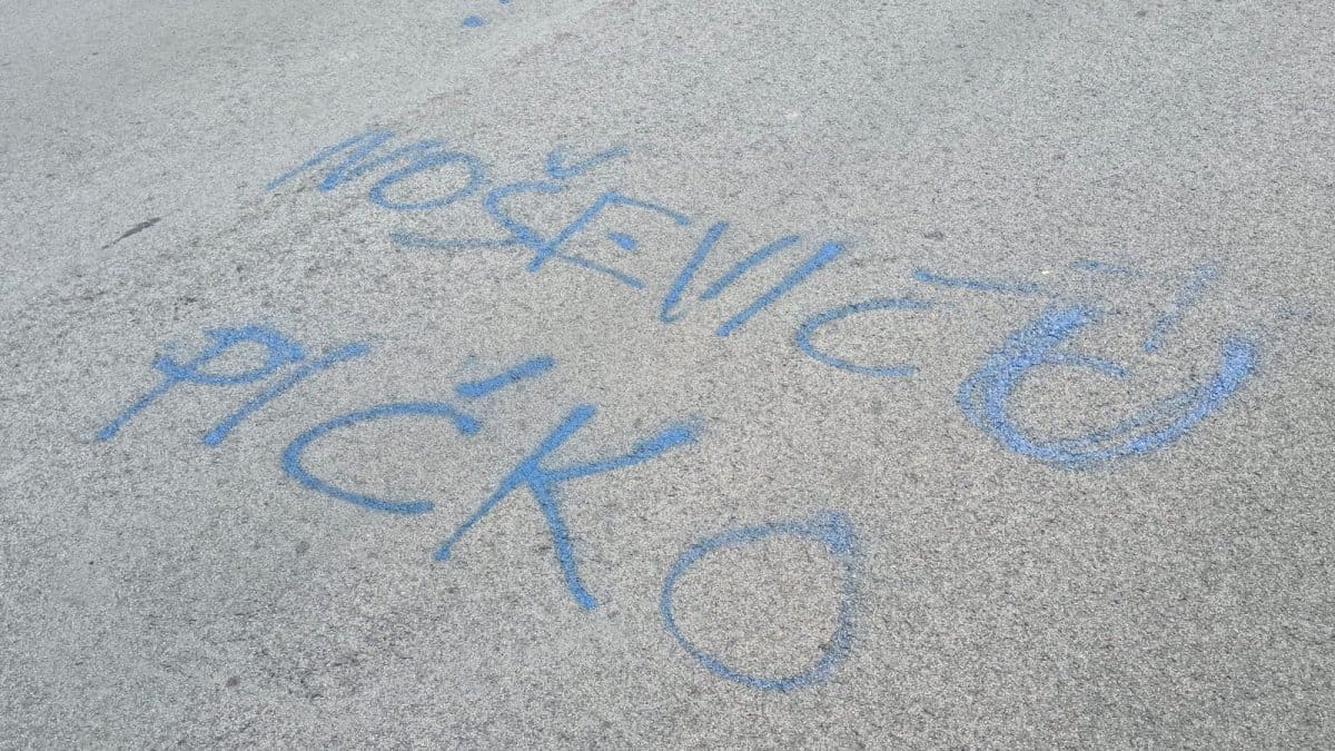"Srđane neče ti proč", "Dosta zlostavljanja", "Marko Pejnoviću tko si ti?", "Ivoševiću p****", "Srđane p****", glase poruke napisane nasred ceste ispod Marjana.