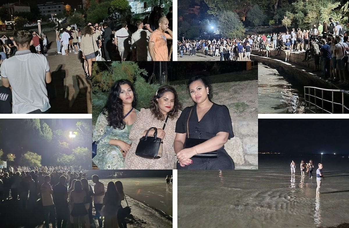 Sve je potrajalo do 2 sata iza ponoći, a onda ih je policija zamolila da se raziđu, što su i napravili. Na Bačvicama smo susreli tri mlade turistkinje iz Londona; Nishu, Tanifahu, Niz. Spavaju u hotelu u Podstrani, a ostaju sedam dana.