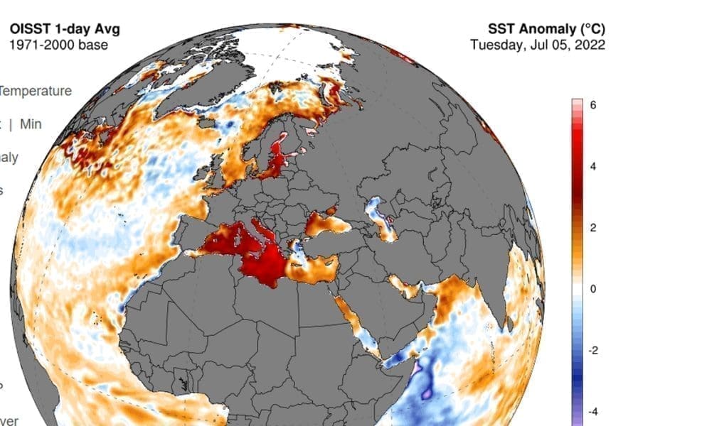Prema službenim podacima Instituta za klimatske promjene Državnog sveučilišta u Maineu, Sredozemlje "kuha". Na karti temperaturnih anomalija površinske temperature svjetskih mora i oceana, vidi se da zadnjih tjedana Sredozemno more ima najveće temperaturno odstupanje od normale u svijetu! Prosječno odstupanje od klimatološkog prosjeka je 3-4°C!