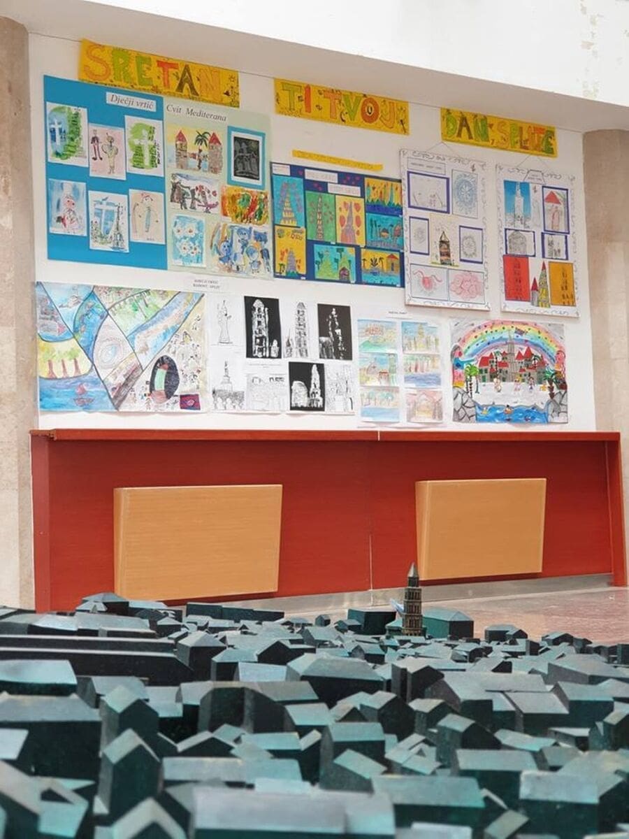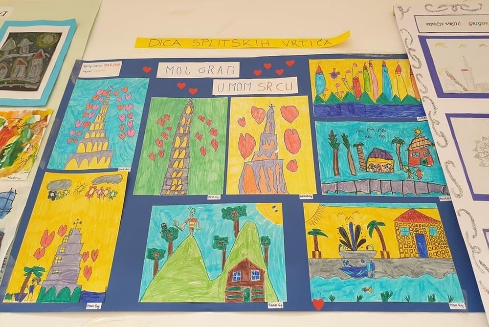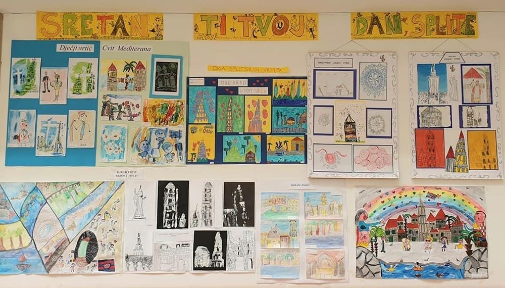 Ususret proslavi Dana grada i blagdana Sv. Dujma, dica splitskih vrtića sa svojim su tetama u atriju Banovine postavila izložbu pod nazivom „Moj grad u mom srcu“.