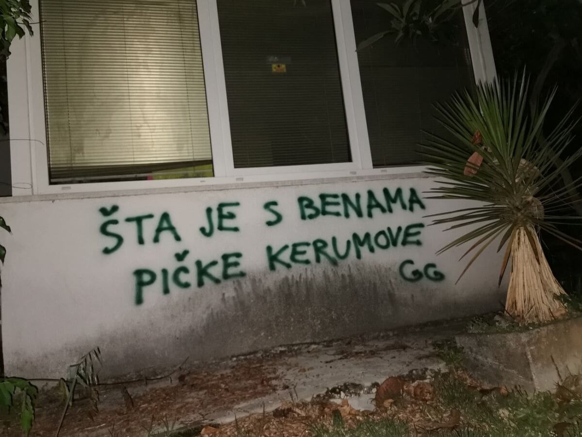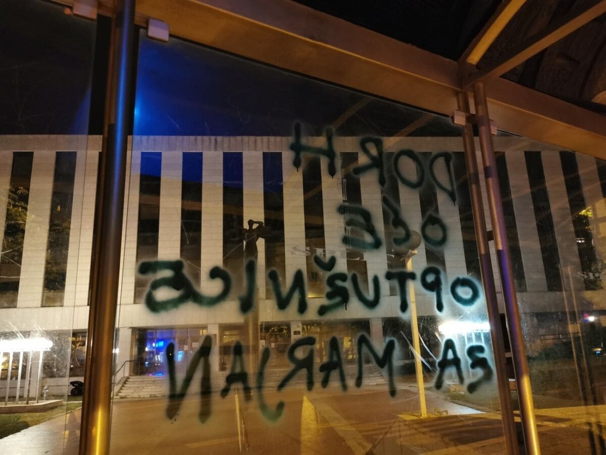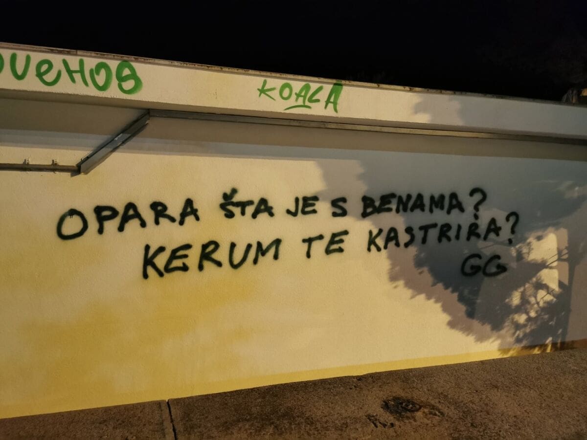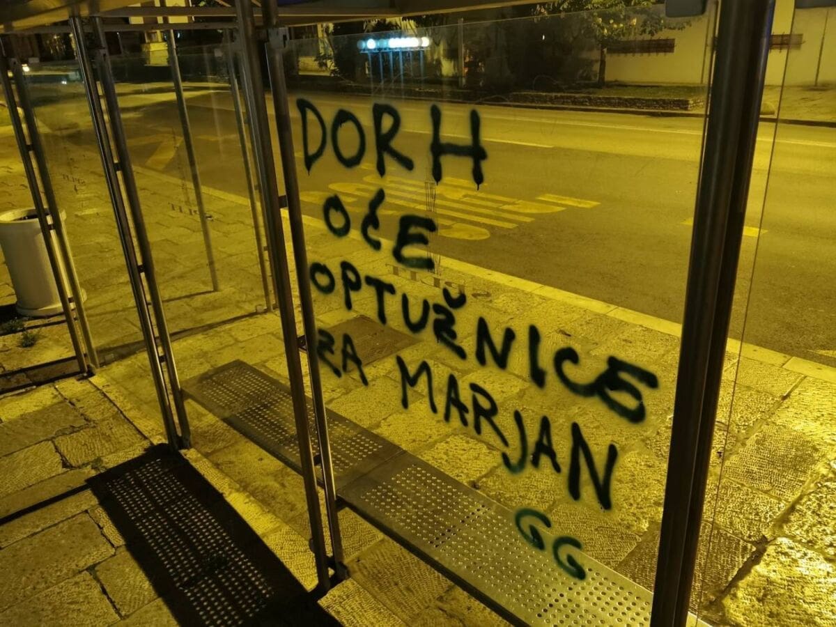 Poruke su ispisane zelenim sprejem na fasadama, autobusnim stanicama, zidovima.