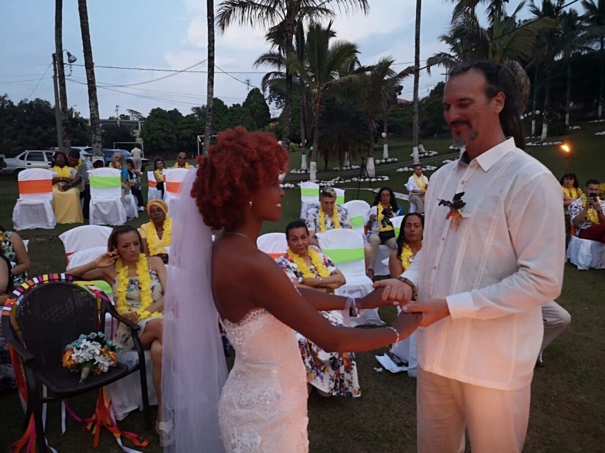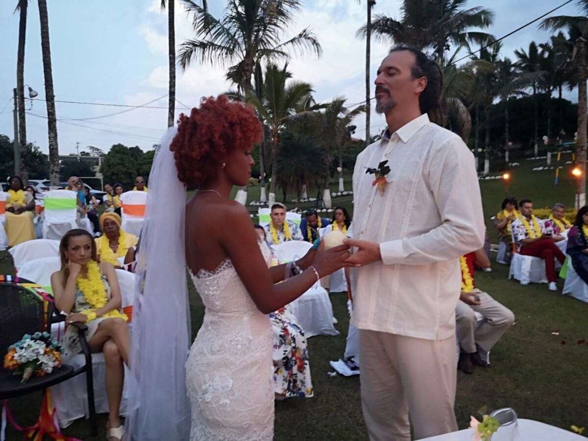 Šoto visokih kokosovim palmi uz oltari stojin isprsen i uspravan u lanenoj robi. Uzvanici svih koluri čekaju obred. Mlada u biloj vinčanici i čokoladne kože, crvene afro frizure i najlipšim osmjehom na svitu prilazi. Pod rukom starijeg brata hoda po laticama, bosa po mekoj travi. Lagana brazilska samba prede, prekrasne riči mi ulaze u uho, meni posvećene. Roj leptira mi prostruji tilon i jedva se skuliran. Šura mi je preda u ruke, pogledali smo se božanstveno.