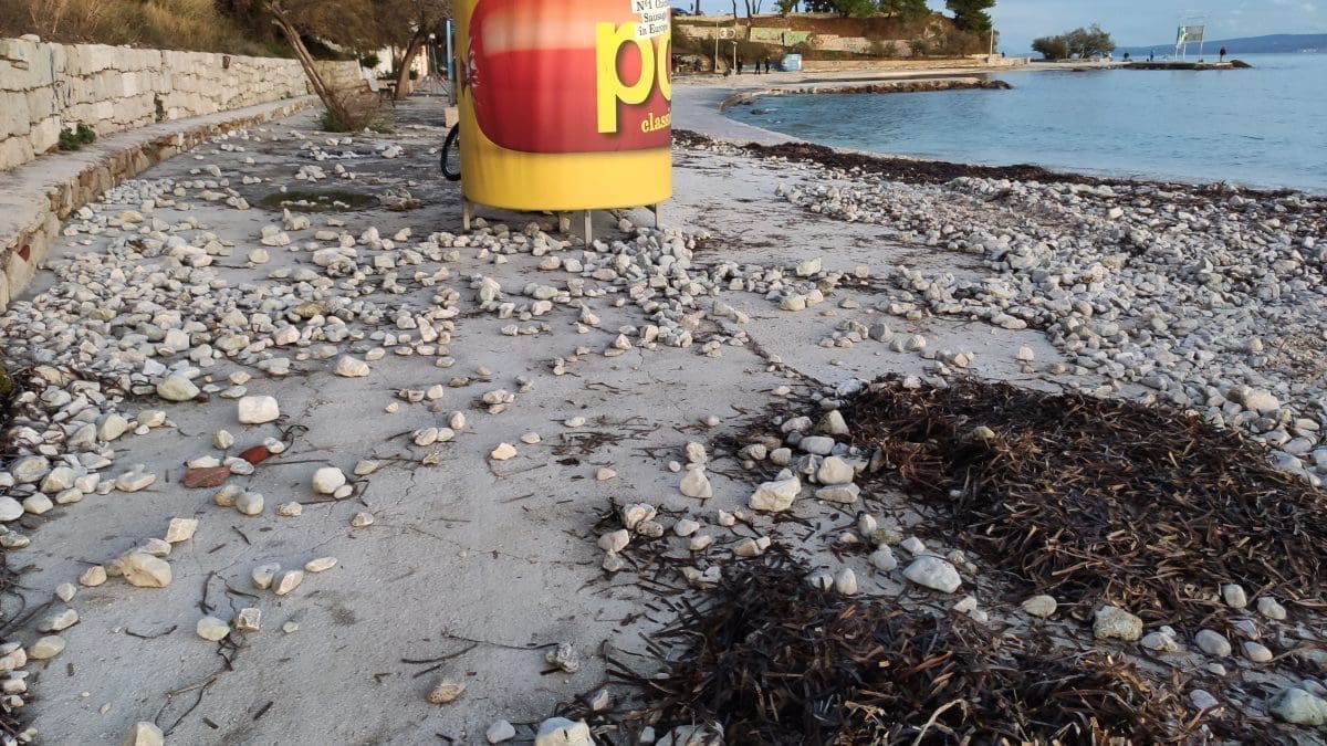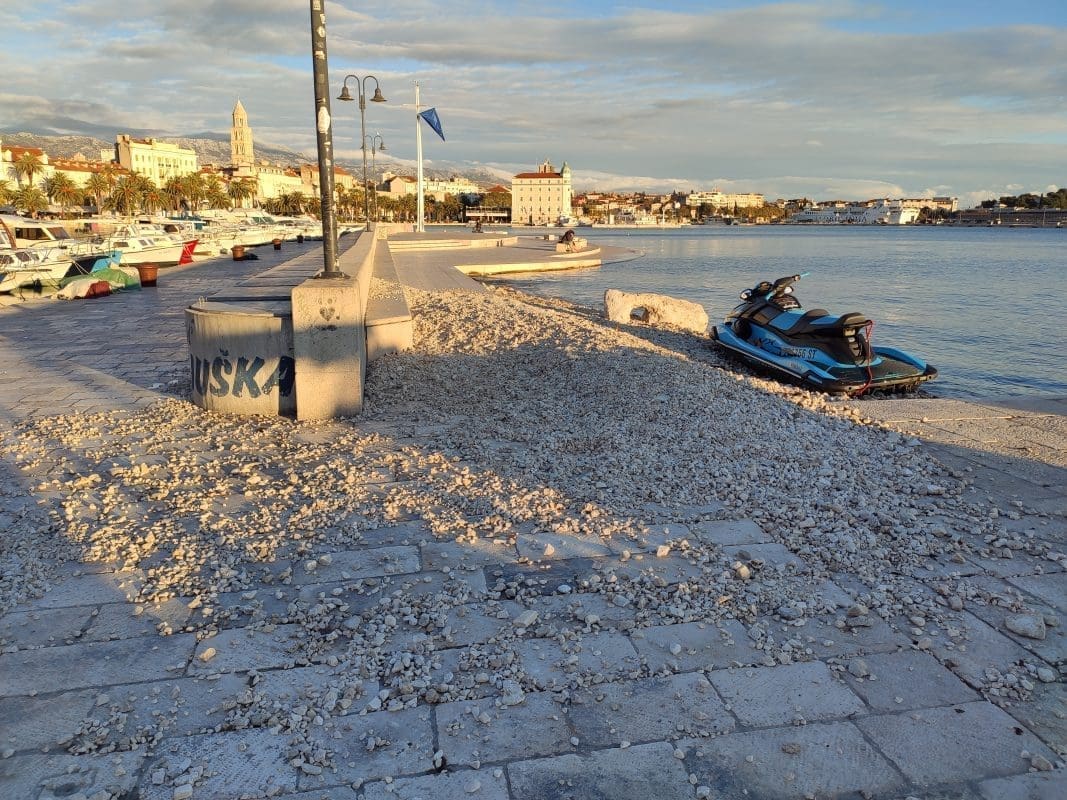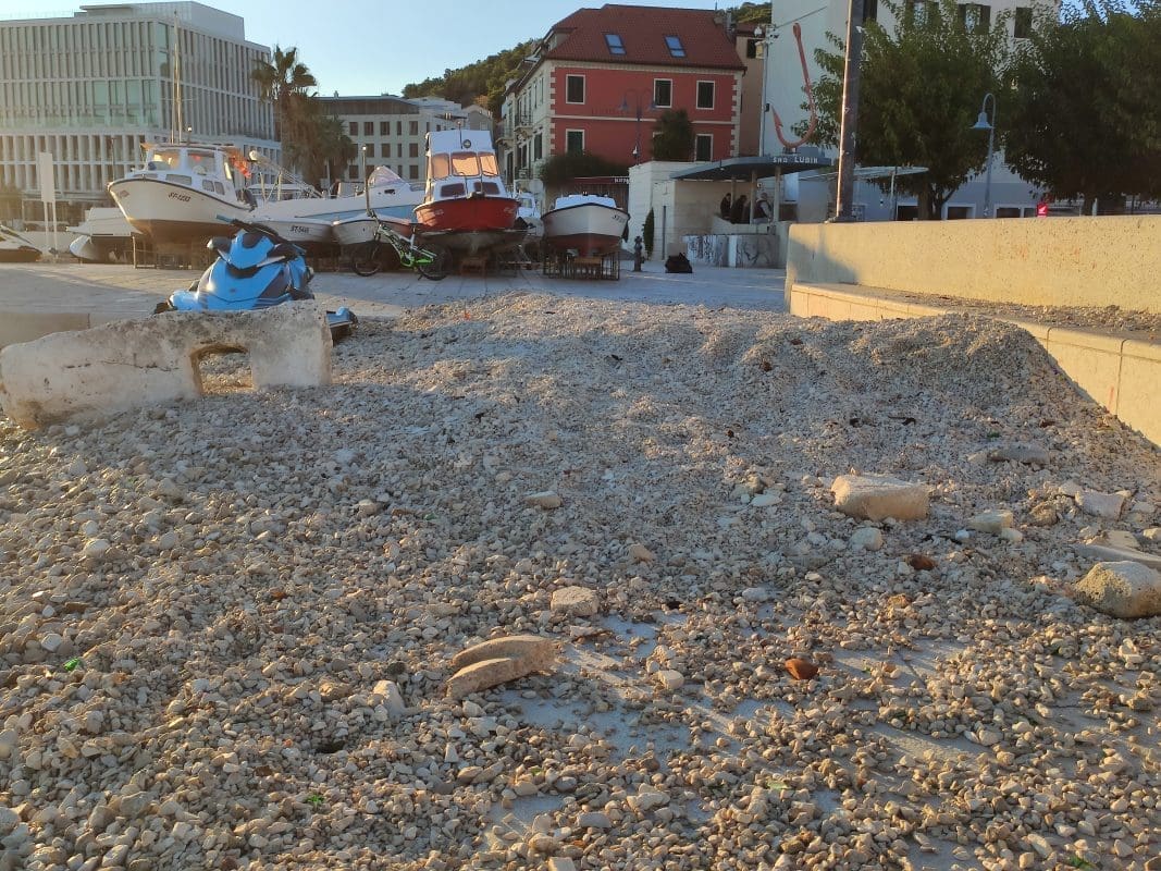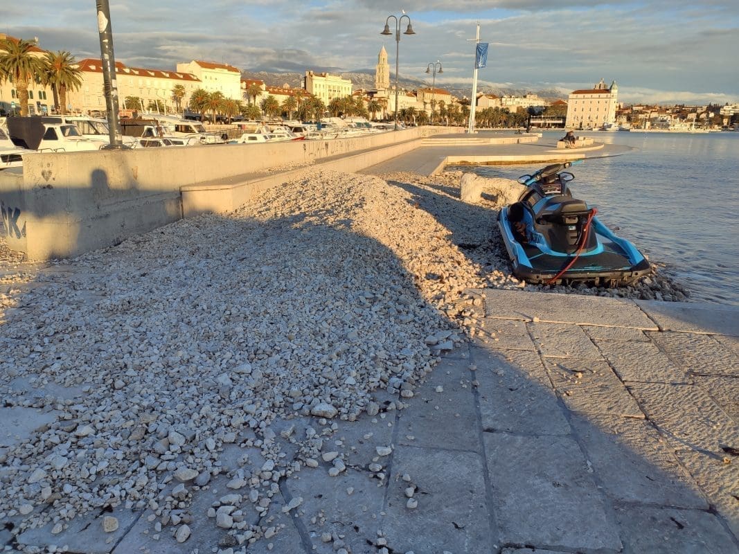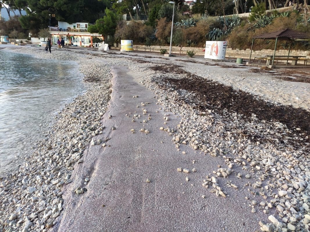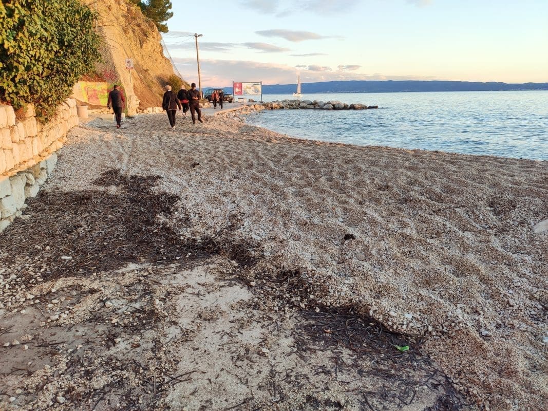 Nešto blaža situacija je na splitskim Ovčicama. Naime, plima je nanijela žalo na površinu koje danas ometa prolaznike u šetnji.