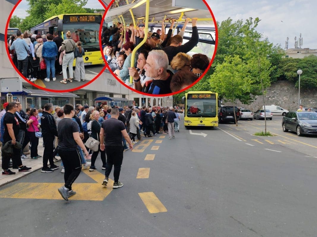 Kako koji autobus za Marjan pristigne krene stampedo, a u autubusu svi natiskani ko srdele. Nema mista ni za šibicu, što bi se reklo.