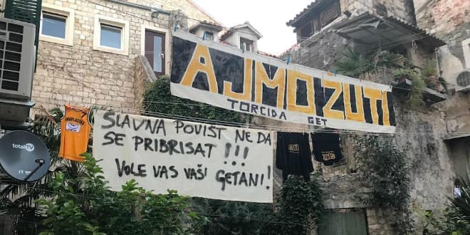 Stanari Dominisove ni noćas nisu spavali. Na tiramole nad popularnim vrtlom izvjesili su transparente podrške Žutima i dres Jugoplastike.