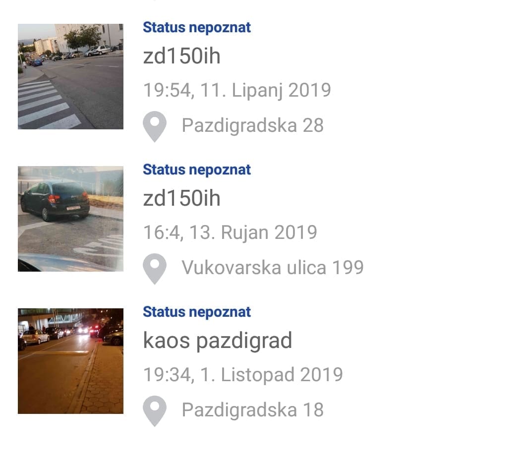 Nesavjesne vozače pozivaju da malo promisle prije nego sljedeći put svog limenog ljubimca parkiraju na ulaz garaže. Priložili su nam i popis prijava iz kojeg se vidi da se ovaj problem događa zaista često, a zbog blizine škole najugroženija su djeca.