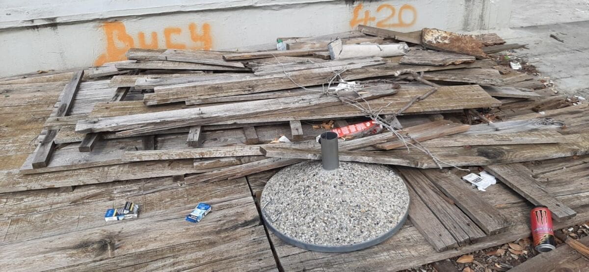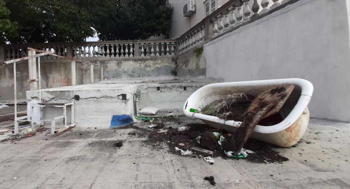 Pokazuje nam nered koji ovi uljezi ostavljaju za sobom. Ima tu svega; gomile praznih boca, kutija cigareta, opušaka, pa čak i jedna oronula kada. U vrtu izgažena trava, a skaline koje vode do terase u potpunom raspadu. I sve to s pogledom na drugu najpoznatiju splitsku šetnicu, Marmontovu.