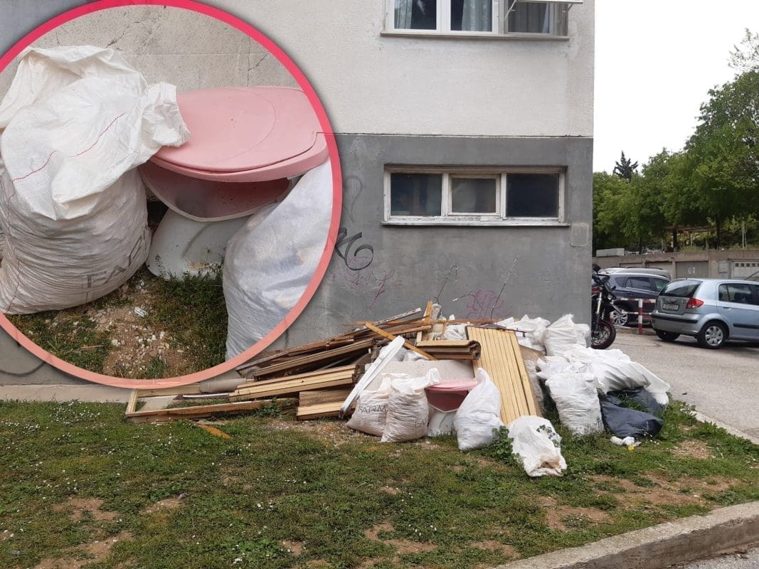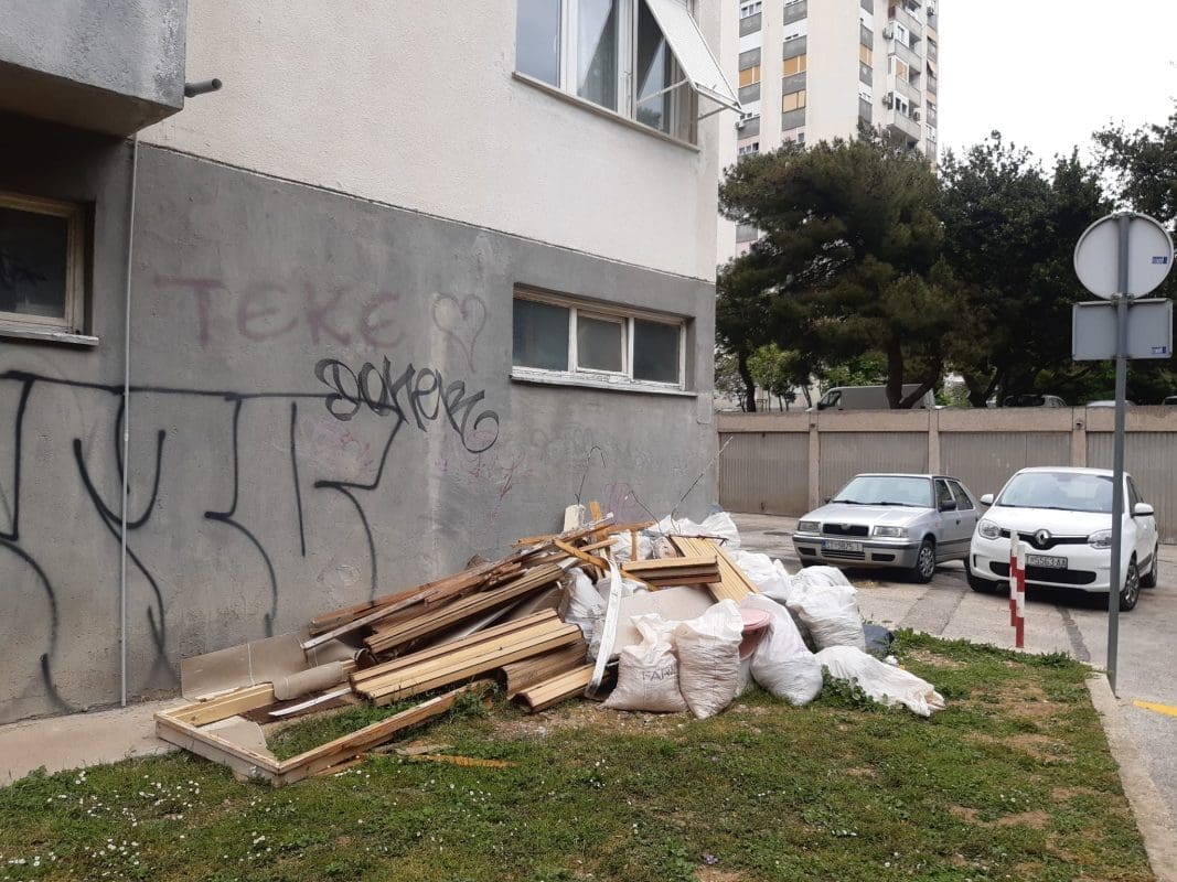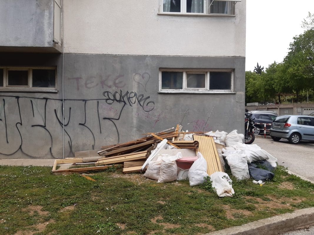 - Uslijed renoviranja stana ostavljene su velike količine građevinskog otpada tik ispod prozora stanara na prvom katu. Vjetar je već raznio dio smeća po kvartu, a kada stignu jaki udari, čestice prašine ulaze u stanove.