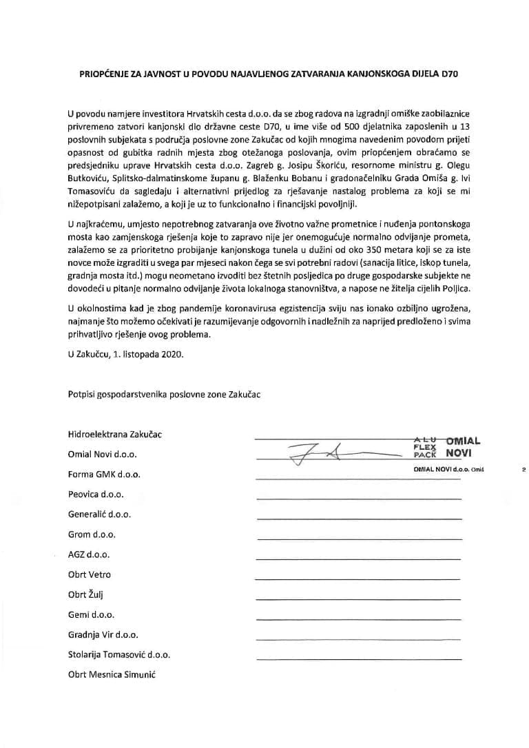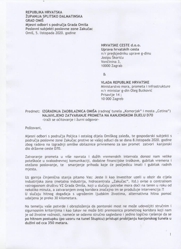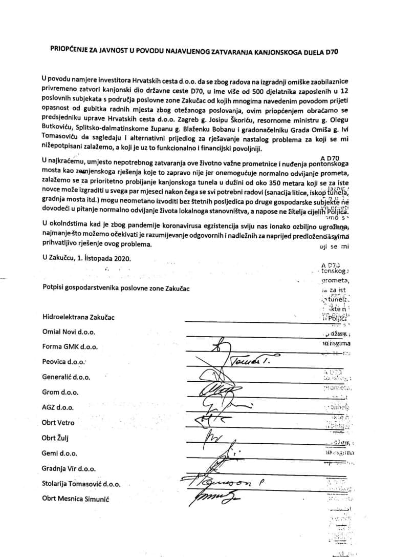Prosvjed organiziraju Mjesni odbori s područja Grada Omiša, a sve njihove aktivnosti podržavaju i poduzetnici koji u Zakučcu imaju svoje poslovne objekte i pogone.
