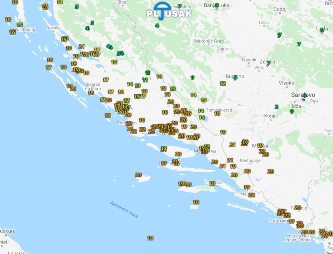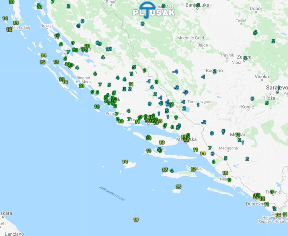 Nije samo Sinj imao ogromnu razliku minimalne jutarnje i najviše dnevne temperature zraka. Razlika veća od 15 stupnjeva zabilježena je u velikom dijelu Dalmatinske zagore. Također, jutros je u Grudi i Konavlima bilo +1°C, a popodne +22°C!