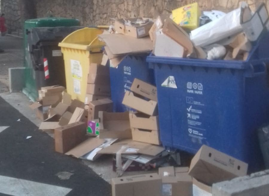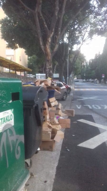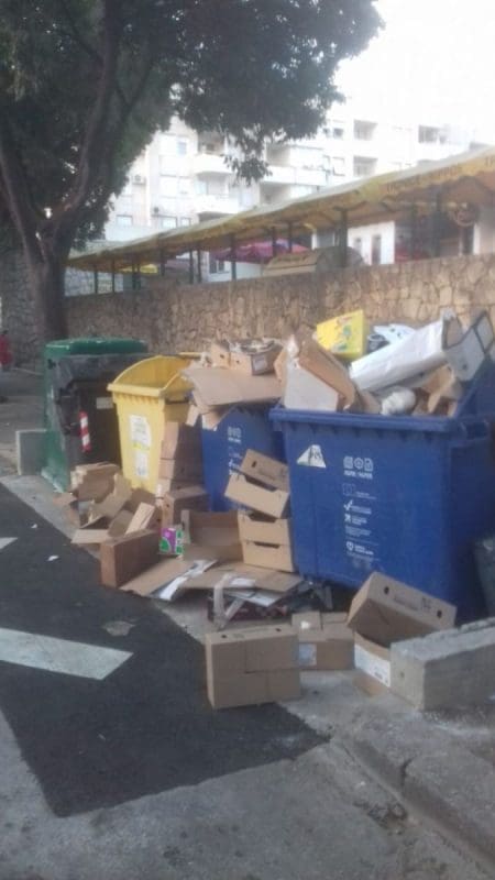 Svakih par dana, u Vinkovačkoj ulici pokraj tržnice Sućidar, stanovnici Plokita gledaju isti prizor. Iz jednog od dućana, odlaže se kartonska ambalaža u i pokraj spremnika. Što bi bilo da zapuše jak vjetar? S druge strane 50 metara južnije zjapi prazan zeleni otok.