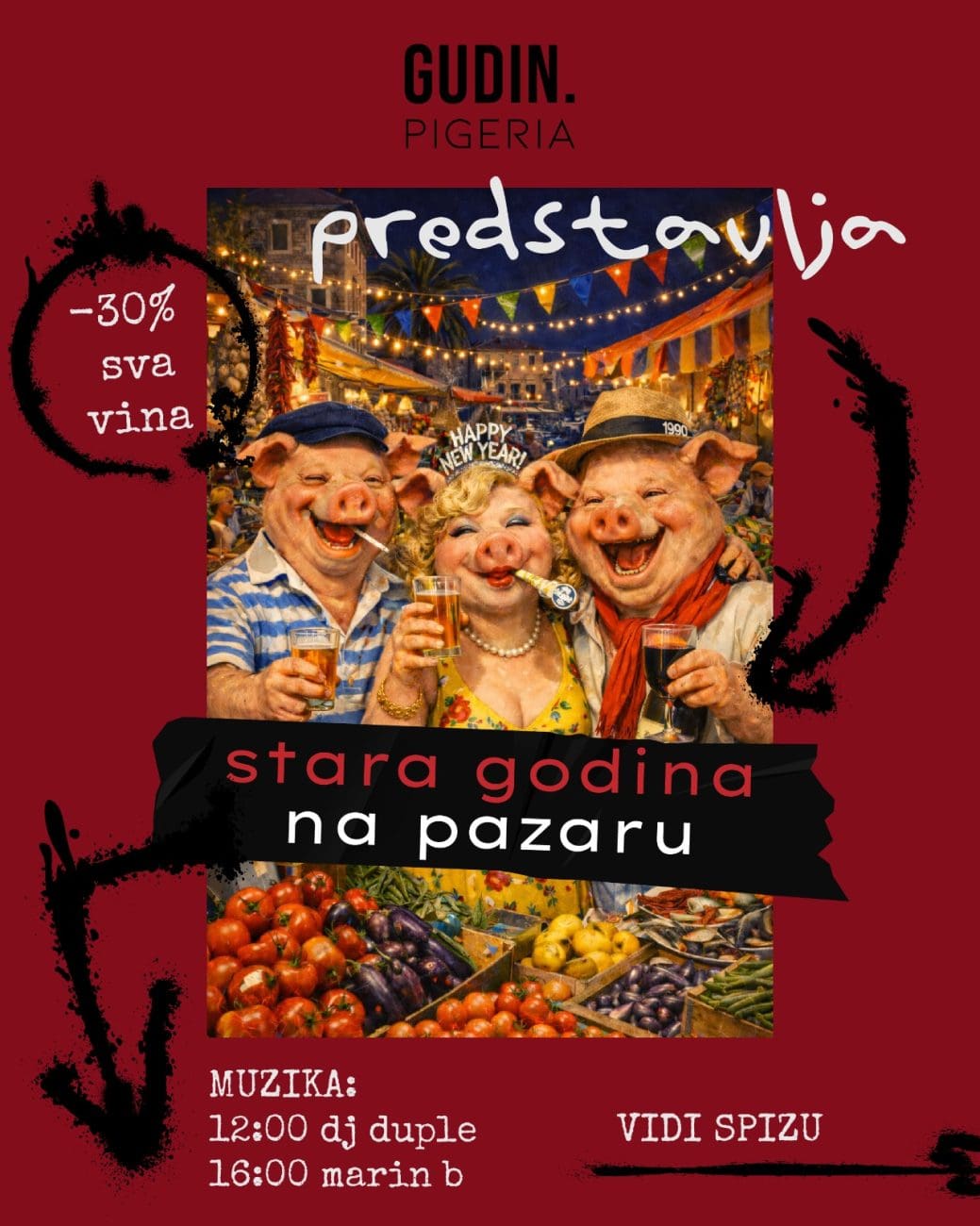 Sve počinje u 12:00, kad DJ Duple staje za miksetu i počne šarat ka da sutra ne postoji. I realno – danas stvarno ni ne postoji. Pazar se puni, čaše se pune, a ljudi se lagano prepuštaju onom osjećaju kad znaš da više nema obaveza, samo još par sati stare godine koje triba iskoristit do kraja.