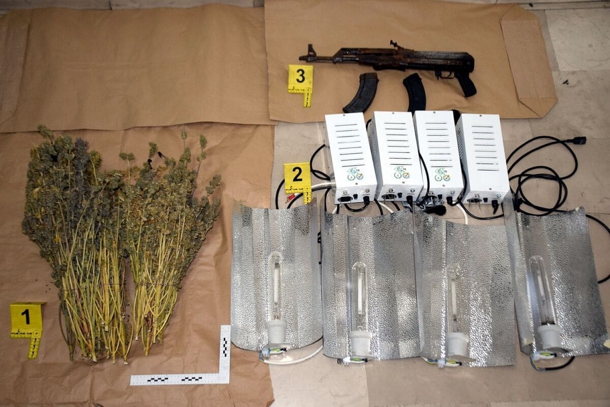 Policijski službenici Službe kriminaliteta droga u subotu su dovršili kriminalističko istraživanje nad 61-godišnjakom kod kojeg su pretragom obiteljske kuće na širem sinjskom području pronašli i oduzeli 45 stabljika marihuane, opremu za uzgoj, jednu automatsku pušku i 60kom streljiva call.7,62mm.