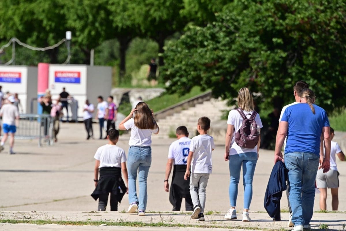 Još je malo ostalo do početka utakmice, a navijači lagano pristižu na Poljud. Stižu svi, stari i mladi. Cijele obitelji s djecom pružit će danas podršku voljenom klubu.