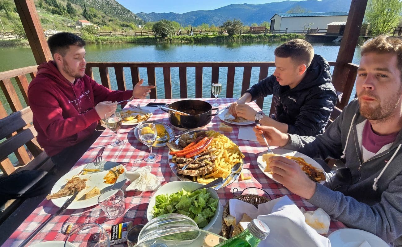 Vraćamo se u "Žapca" jer je krajnje vrijeme za ručak. Ovaj eko etno park idealan je za posjete u toplijem dijelu godine, mogu ga posjećivati pojedinci, grupe, obitelji. Ima prostranu unutarnju salu, terase uz obale jezera, čak i jedan "separe" koji smo iskoristilo za ručak. A po pitanju menija, od lokalnih specijaliteta - brujeta od jegulja i žaba do uobičajene mesne ponude. Ovde moram priznati da jegulje nisam jeo od djetinjstva. Naime, na rijeci Žrnovnici jegulja u prošlosti nije nedostajalo i često sam ih jeo na razne načine - na gradela, na brujet. No u nekom trenutku sam ih se zasitio i nisam ih kušao dugo, dugo... sve do travnja 2025. I moram priznat, bile su izvrsne! Park ima i brojne druge sadržaje poput balotaškog zoga, parka za djecu, ali i neretvanske zavičajne kuće koju je gazda sam napravio i koju vrijedi pogledati. A kako mu ide dobro, postupno će tu nicati i novi sadržaji poput soba za iznajmljivanje. Sve u svemu, idete li pravac doline Neretve, mjesto je visoko na listi mojih preporuka.