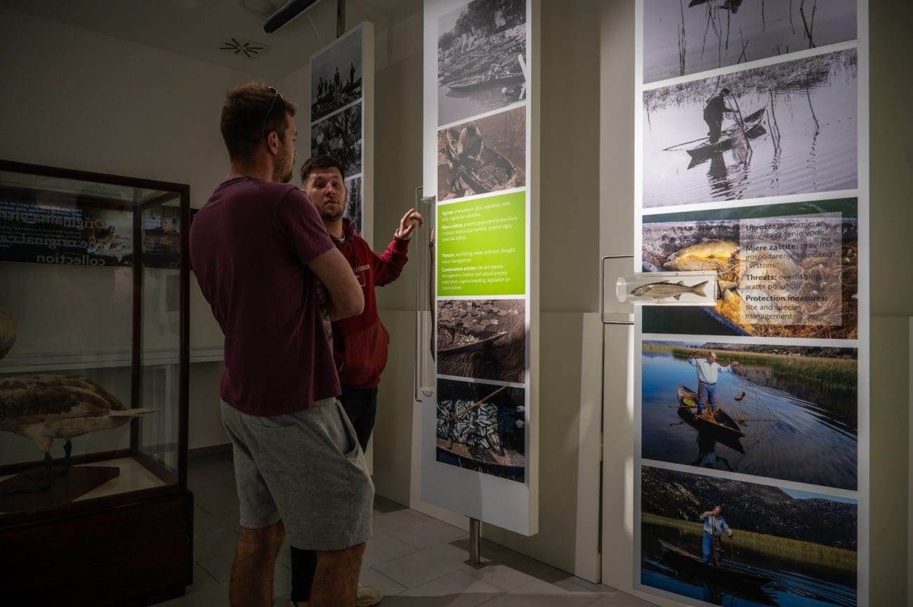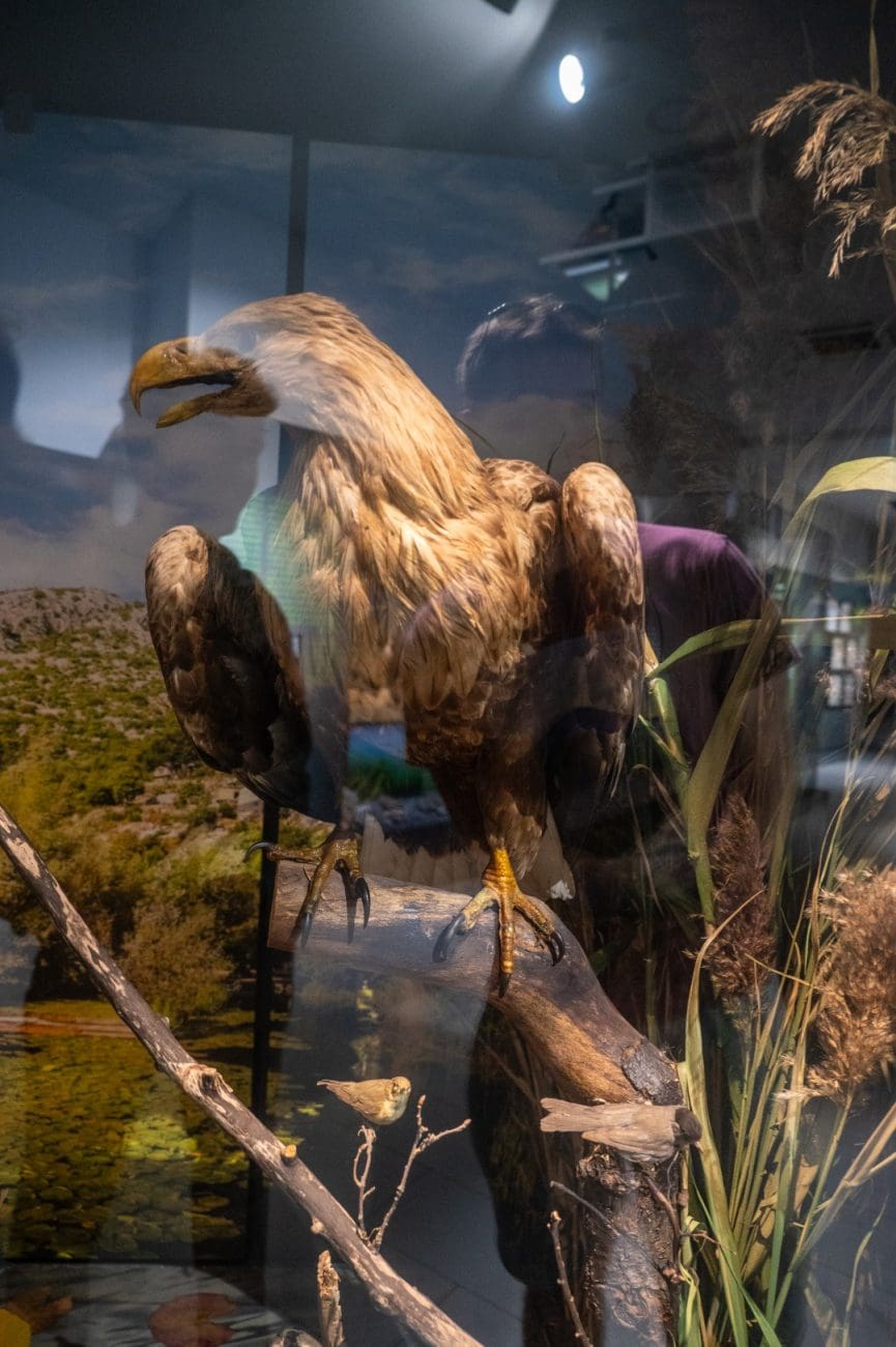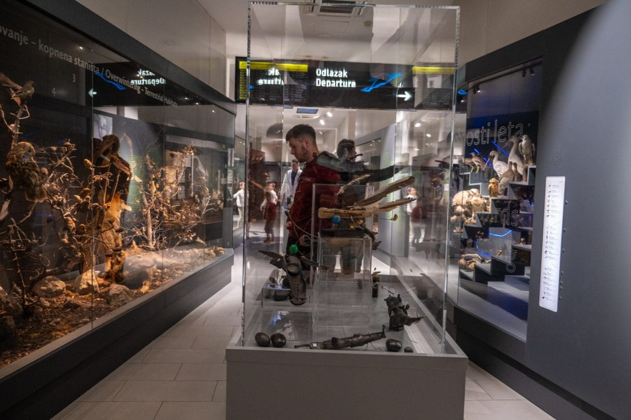 U novom multimedijskom ruhu, koje su osmislili stručnjaci Hrvatskog prirodoslovnog muzeja, postav se širi kroz pet tematskih soba. Krenete li kružnim hodom, najprije ulazite u dubine nekadašnjih špilja i podzemnih tokova, a zatim prelazite u trodimenzionalne prikaze trščaka, kanala, kamenjara i poljoprivrednih polja – sve dok vas “aerodromska scena” seoba ptica ne odvede u zimske priče slanih jezera. Dok vam iz skrivene zvučne kulise dopiru gugut čaplje ili glas žličarke, videoprojekcije na zidovima oživljavaju ponašanje životinja baš u onom trenutku kad biste inače trepnuli i propustili kadar. Iz treće sobe izlazi se u mali botanički vrt, uređen kao živa scenografija s autohtonim raslinjem, kućicama za ptice i hotelom za kukce, idealna kulisa za školske radionice i prve lekcije iz bird-watchinga.