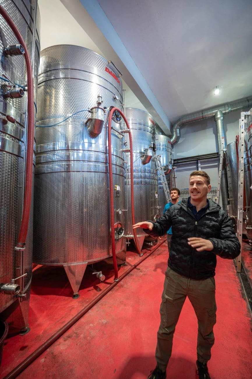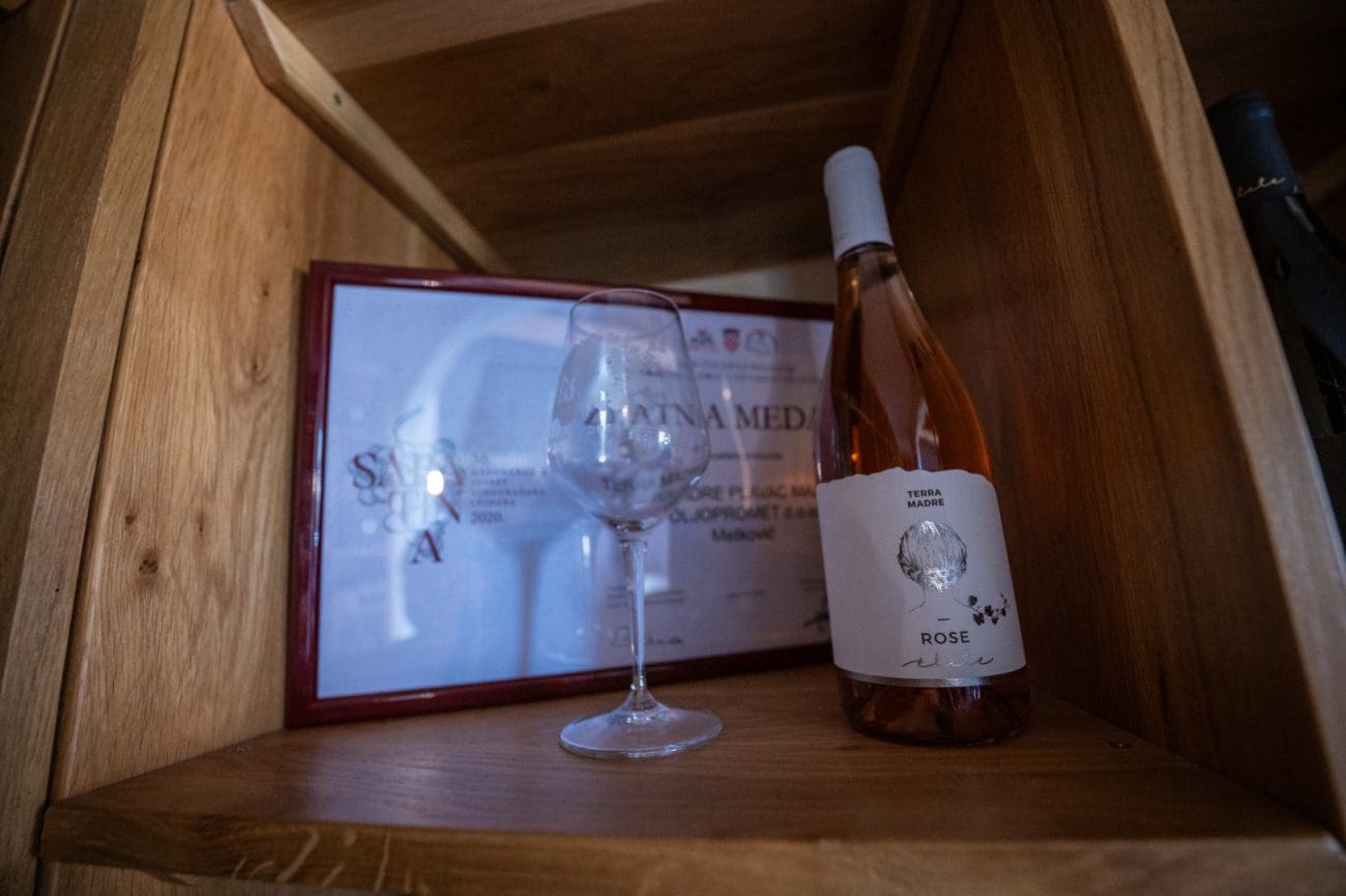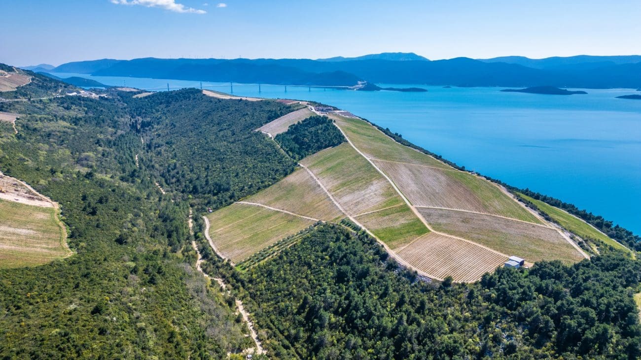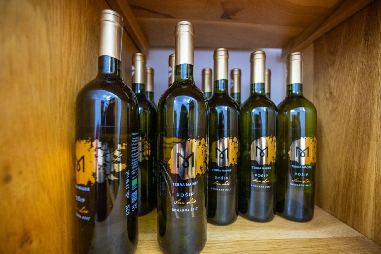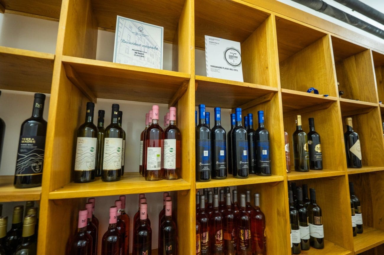 Bura je očistila nebo koje je kristalno plave boje, a nebesko-morsko plavetnilo i zeleno prostranih vinograda pogled čine takvim da teško može biti mediteranskiji. Skrećemo sa stare Jadranske magistrale, cesta se naglo počela penjati uz bijelu stijenu, a asfalt se pretvorio u usku žilu između vinograda koji doslovce vise nad morem. Stižemo u vinariju Terra Madre – suvremenu građevinu utisnuta u liticu, s terasom gdje pogled puca tridesetak kilometara naokolo. Vinarija je pod krovom tek od 2017., no već puni oko 60 000 boca godišnje i niže medalje. Dočekuje nas ljubazno osoblje te uskoro krećemo u obilazak vinarije i njenog podruma.