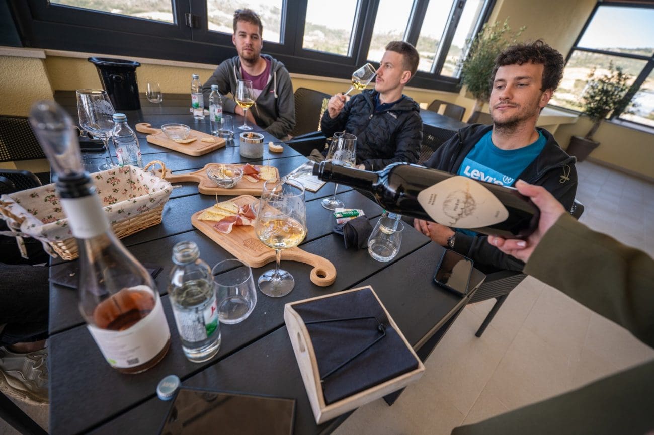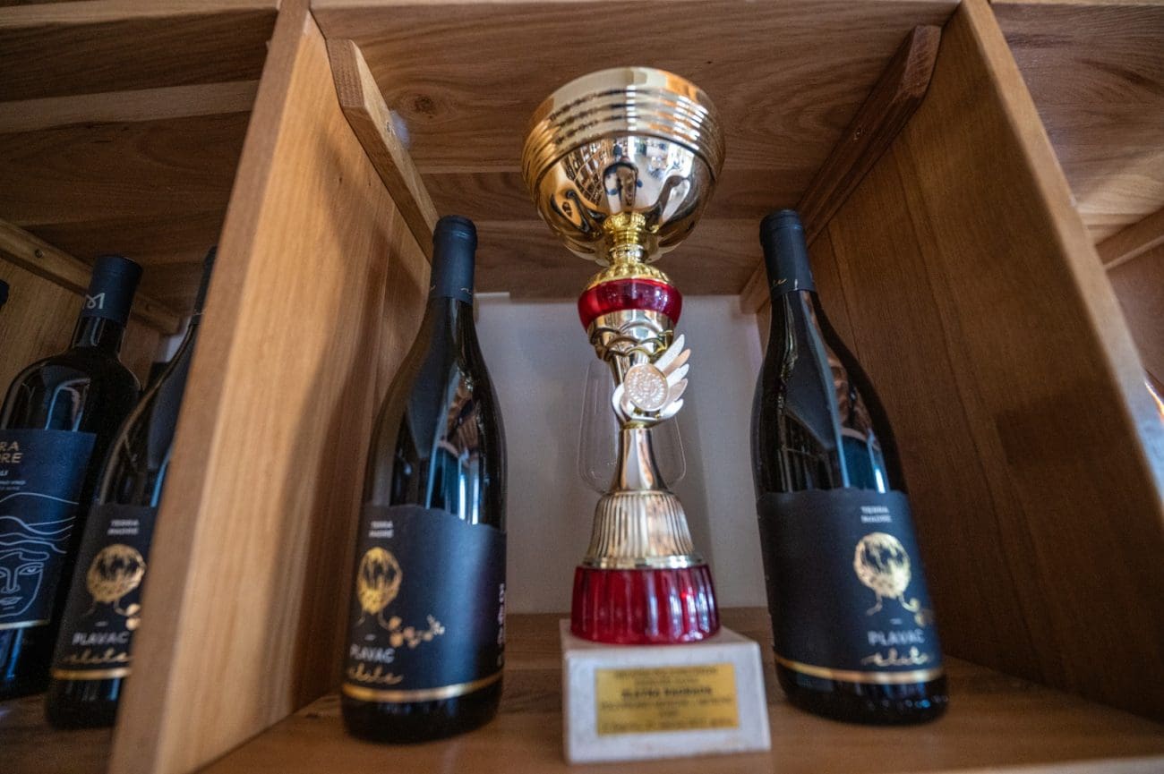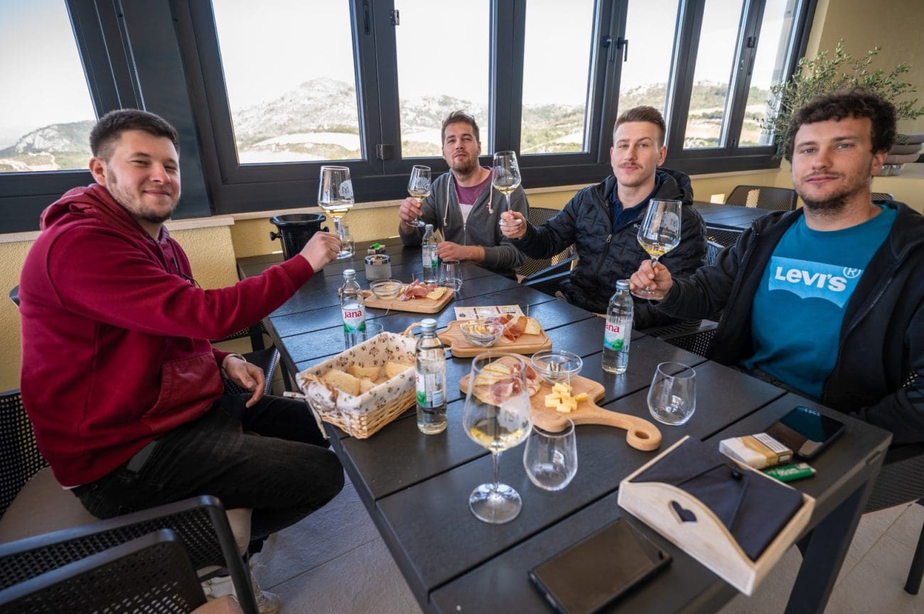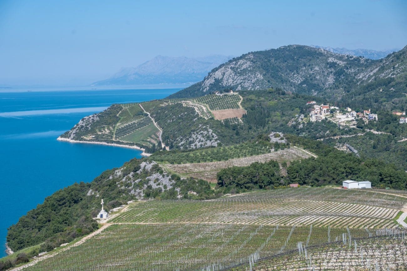 Degustacija ovdje nije brza stanica nego mala dalmatinska siesta: na drveni pladanj stižu pršut, slane srdele, dalmatinski sir, te je degustacija nagrađenih vina mogla je početi. U tom trenutku shvatite zašto su vlasnici, kad su 2009. prvi put raskrčili ovaj krš da zasade lozu, projektu dali ime “majka zemlja” – jer je ovdje sve podređeno lozi: kamen crpi toplinu, more vraća vlagu, a bura prozračuje trsje. Kako su padine dio velikog prirodnog kanala, bonaca je ovdje gotovo nepoznat pojam. Uvjerili smo se u to i sami pa smo se usprkos travanjskom suncu sklonili s vjetrovitog dijela terase.