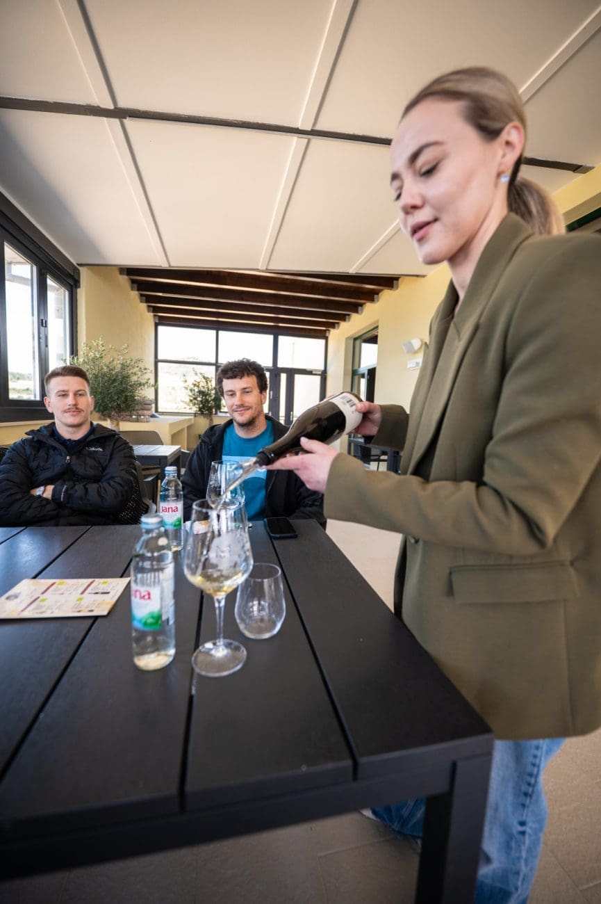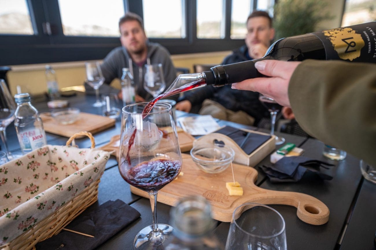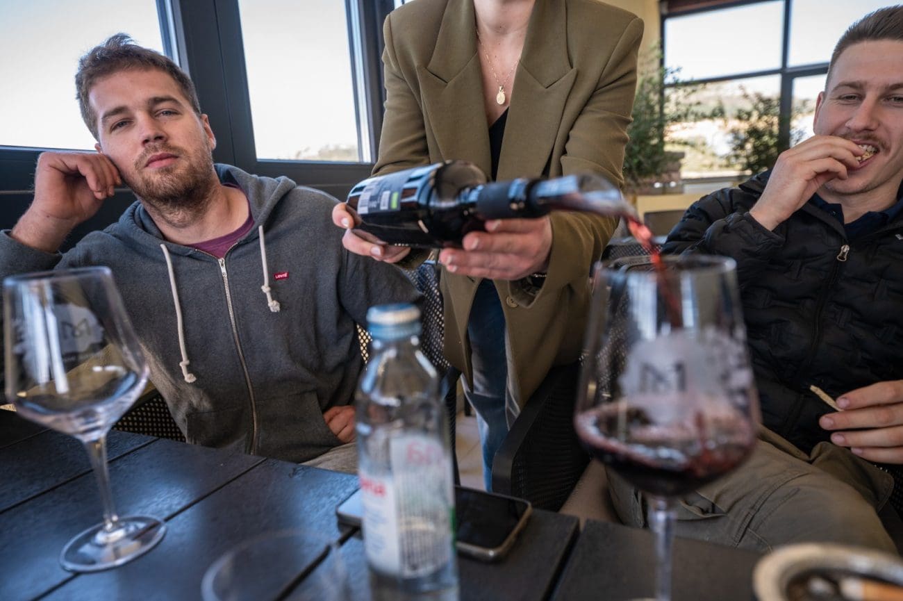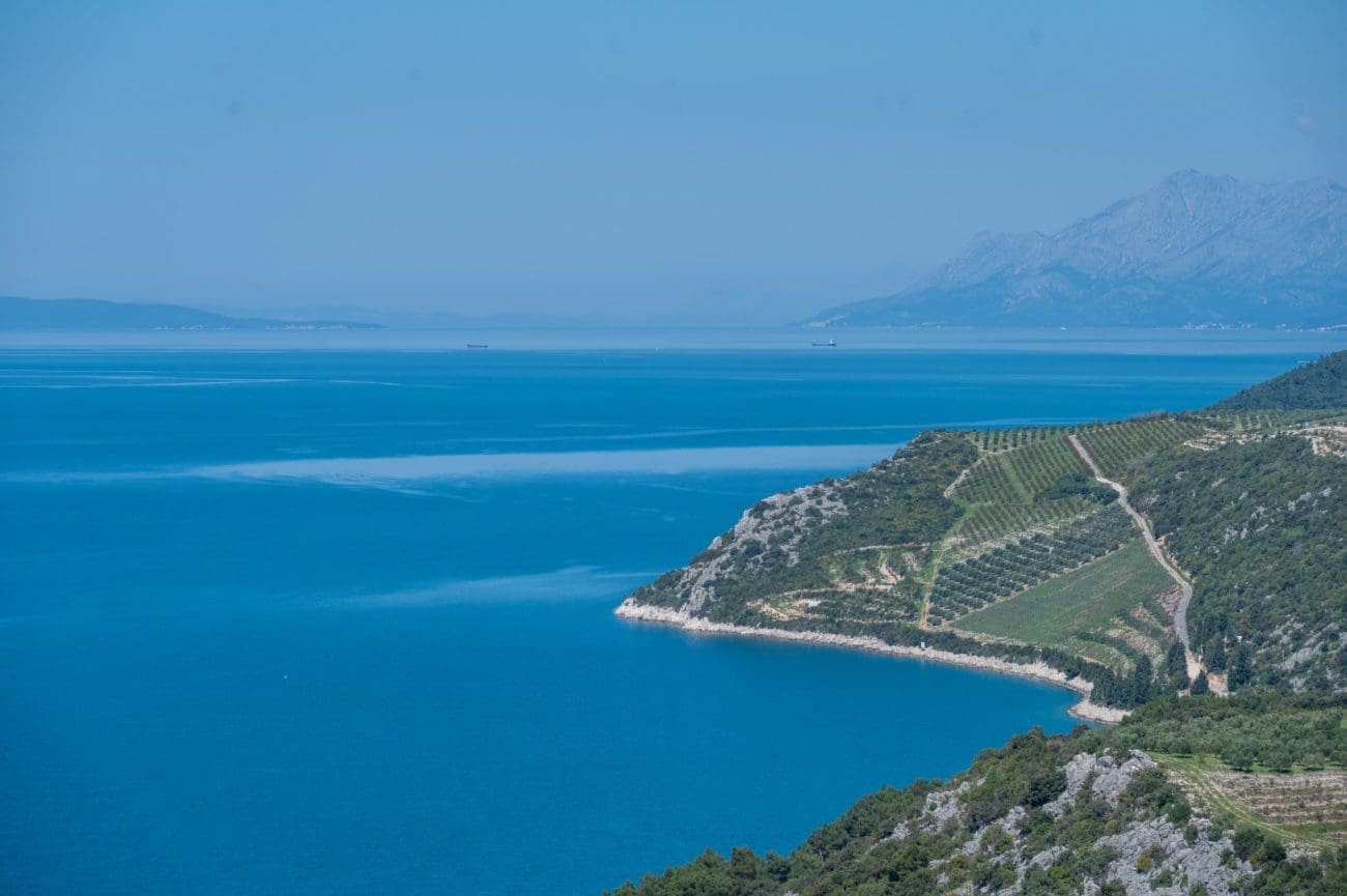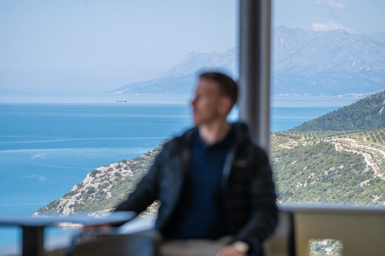 Degustacija ovdje nije brza stanica nego mala dalmatinska siesta: na drveni pladanj stižu pršut, slane srdele, dalmatinski sir, te je degustacija nagrađenih vina mogla je početi. U tom trenutku shvatite zašto su vlasnici, kad su 2009. prvi put raskrčili ovaj krš da zasade lozu, projektu dali ime “majka zemlja” – jer je ovdje sve podređeno lozi: kamen crpi toplinu, more vraća vlagu, a bura prozračuje trsje. Kako su padine dio velikog prirodnog kanala, bonaca je ovdje gotovo nepoznat pojam. Uvjerili smo se u to i sami pa smo se usprkos travanjskom suncu sklonili s vjetrovitog dijela terase.