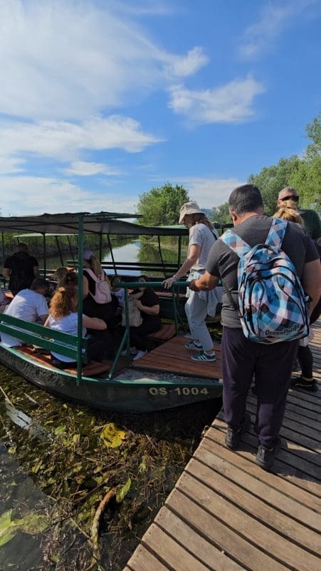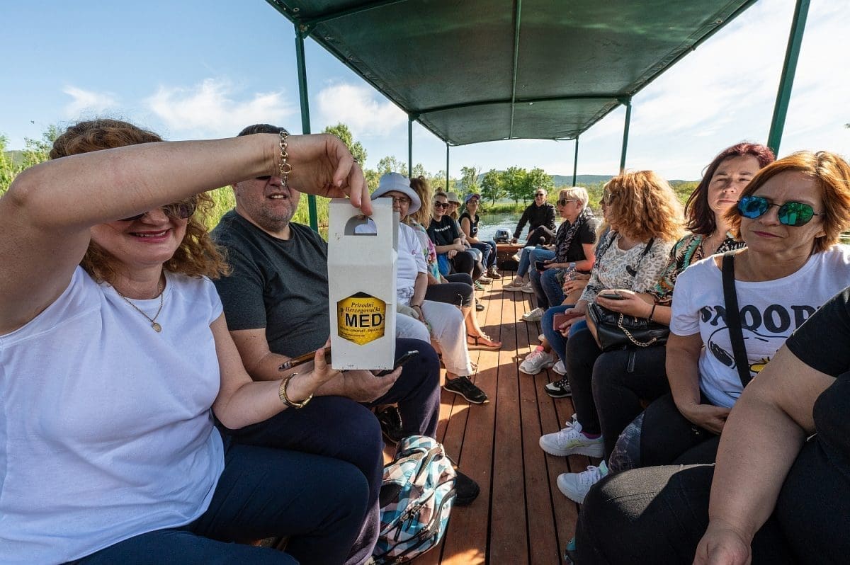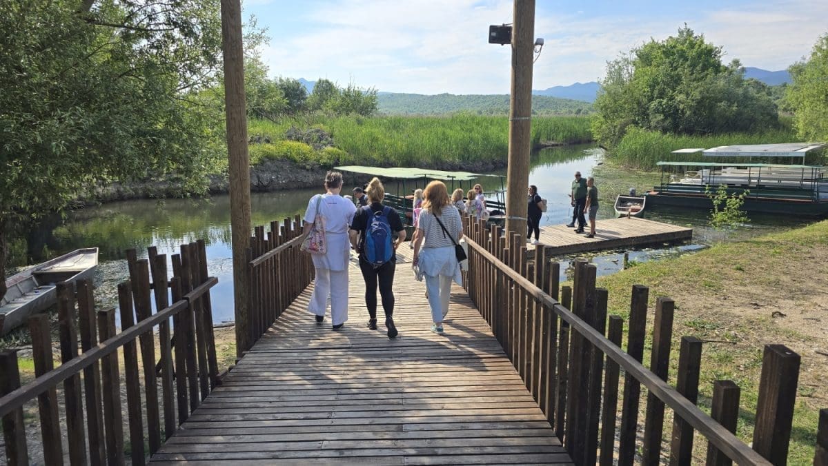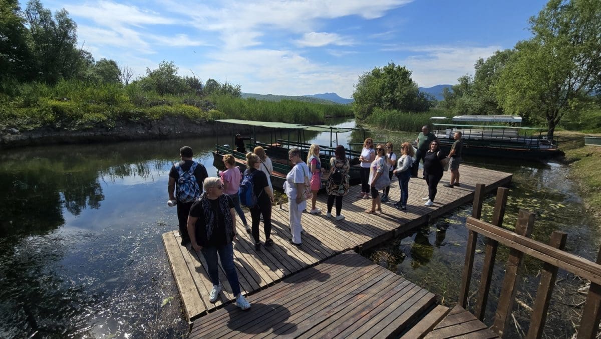 Auta parkiramo u blizini hotela Park i silazimo do obale jezera gdje nas dočekuju brod i naša vodička. Ukrcavamo se i jedan od najatraktivnijih dijelova današnje izleta mogao je početi. Hutovo blato sastoji se od niza jezera kao što su Deransko, Jelim, Drijen, Orah, Škrka i Svitava, a potonje je umjetno. Neka od njih su prirodna depresija što znači da im je površina niža od razine mora. Ovo močvarno carstvo zelenila lijepo je u svakom dijelu godine, a mi smo ga posjetiti točno onda kada je najljepše - u svibnju. Močvarne ptice, lopoči, gusta trstika, zelenilo livada i plavetnilo neba - samo su neki od prizora koji su nas oduševljavali, sve uz nestvarno lijepe refleksije na površini mirnih jezerskih voda. Idiličnu panoramsku i foto turu uzburkao je tek prolazak broda iz suprotnog smjera, kada je njegov val pojedince “rashladio”. Kaže nama naša vodička da ovdje poskoci znaju plivati, eto u Hercegovini baš svi nađu načina da se snađu.