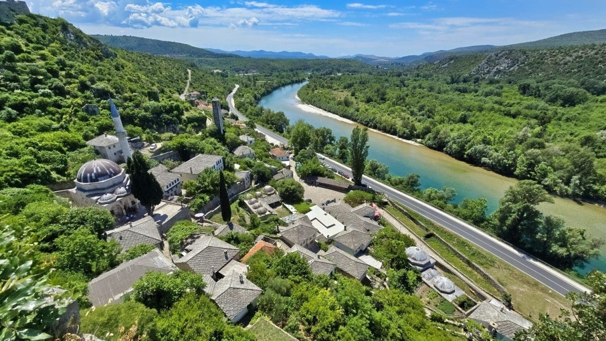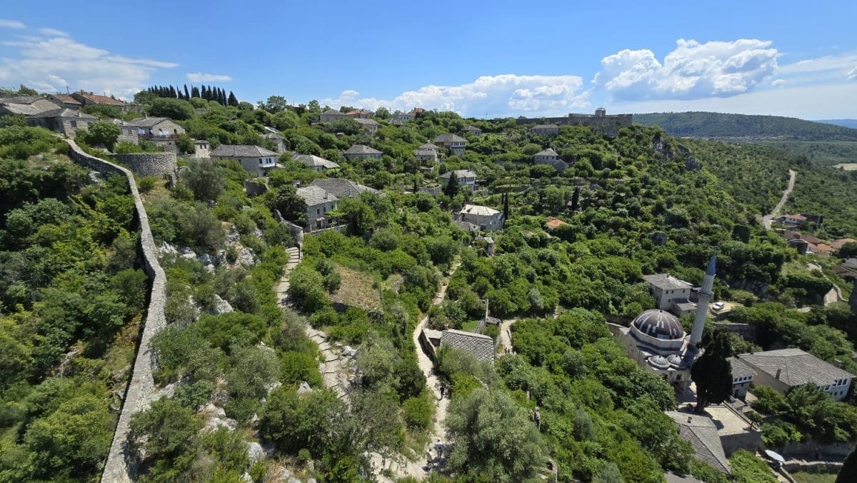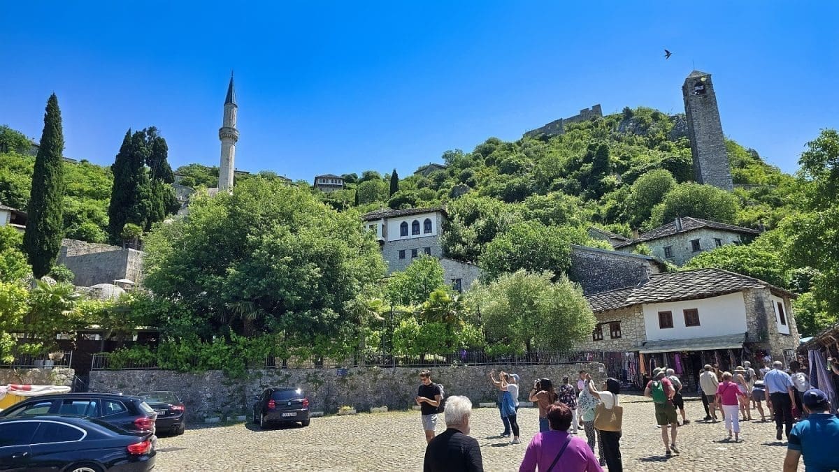 Nakon osvježavajućih jezera Hutovog blata, još jednom zastajemo na obližnjem vidikovcu diviti se pogledu na ovaj biser prirode koji ću sigurno ponovno posjetiti. Sljedeća “štacija” je predivni Počitelj, utvrda koja se nalazi sjevernije od Čapljine, na putu za Mostar. Mjesto na kojem se sudaraju duh Mediterana i Orijenta ostavit će na vas snažan utisak, osobito ako ga prvi put posjećujete. ova utvrda izgrađena je u 14. i 15. stoljeću i prvotno je služila obrani od Turaka, a potom je bila 4 i pol stoljeća pod turskom vlašću, što je uvelike odredilo njegovu današnju arhitekturu. Pitoreskni čempres ispred Šišman Ibrahim-pašini džamije slovi za jedan od najstarijih u ovom dijelu Europe, a u samoj džamiji nisam propustio priliku pomoliti da za to da budućnost ove lijepe zemlje bude kudikamo ljepša od velikog dijela njene prošlosti. Usprkos vrućini, posebna nam je atrakcija bila popeti se na Gavrankapetanovića kulu, najviši objekt u Počitelju odakle pogled seže na Neretvu, Čapljinu, novoizgrađeni most... Osim suvenira, tapeta, i koječega drugoga, u podnožju Počitelja smo u poluvremenu gladi kupili par kilograma trešanja, u ovoj turističkoj destinaciji, prilično ukusne i velike, plaćali smo ih po 3 eura. Očito EU “napredak” još nije zahvatio BiH poljoprivredu.