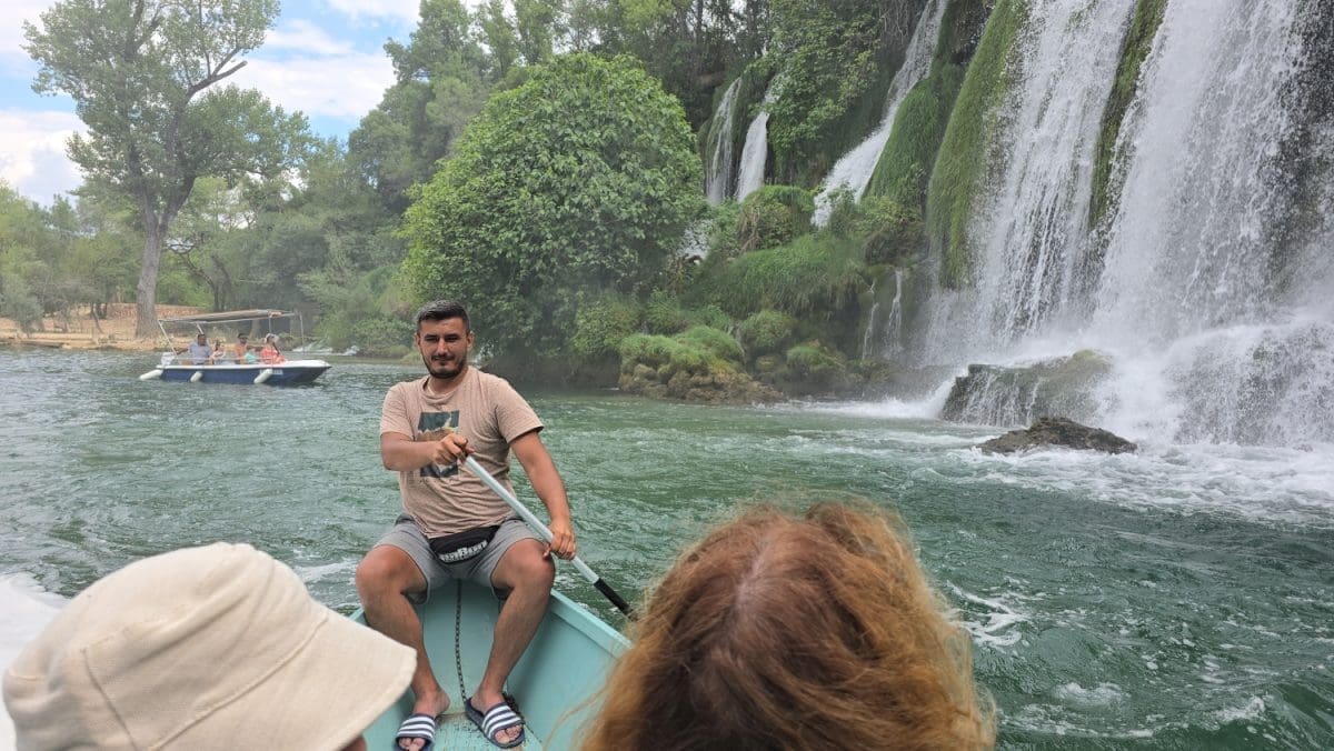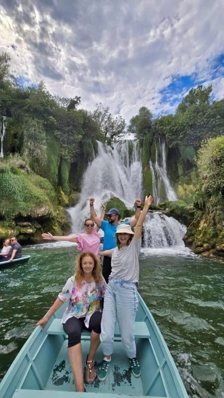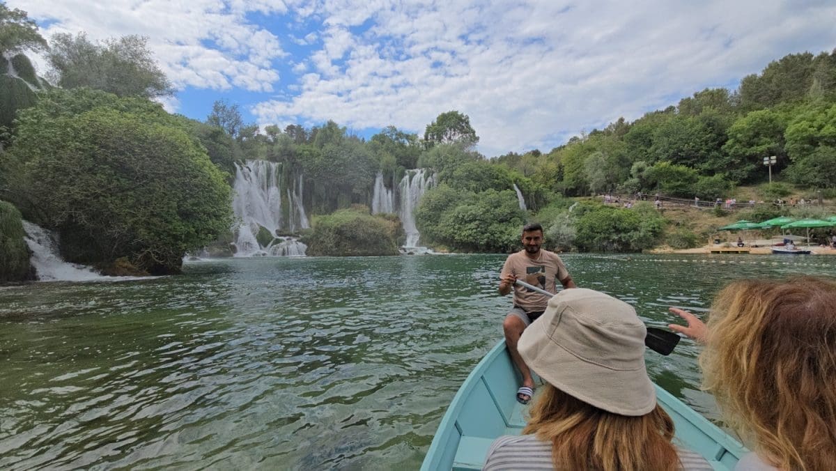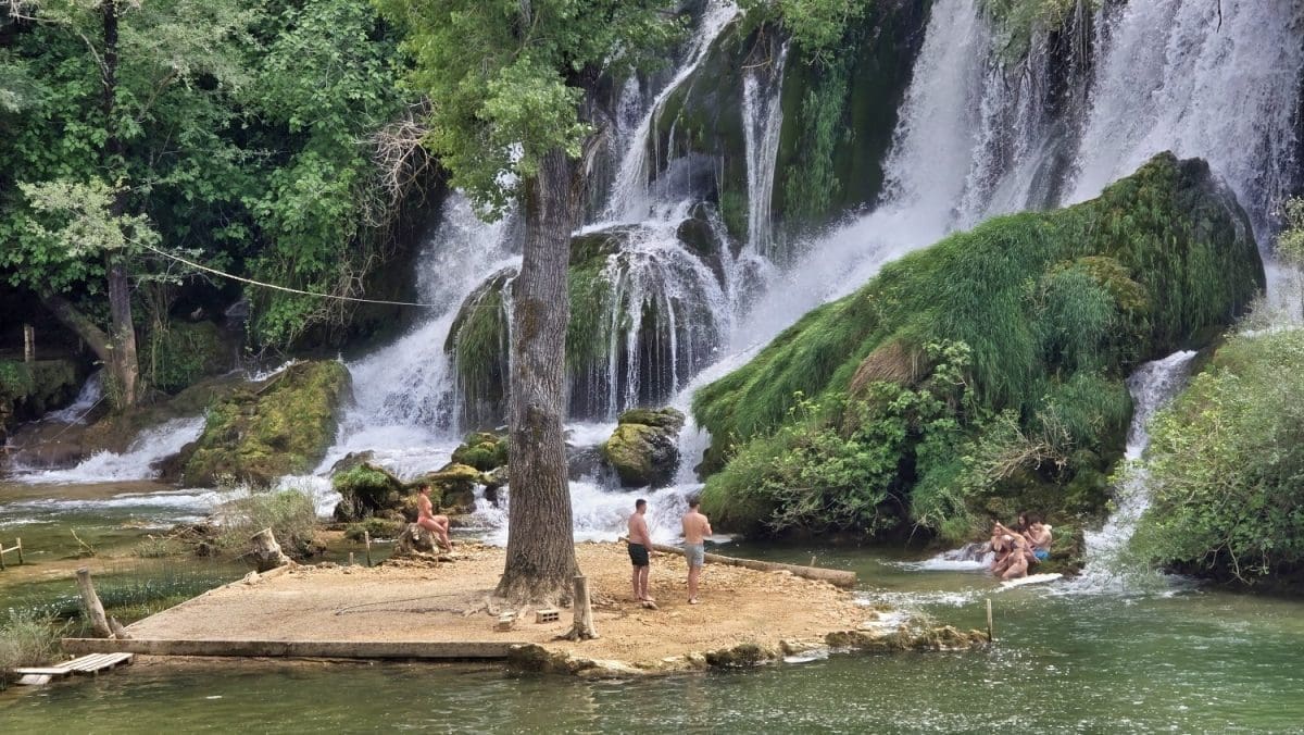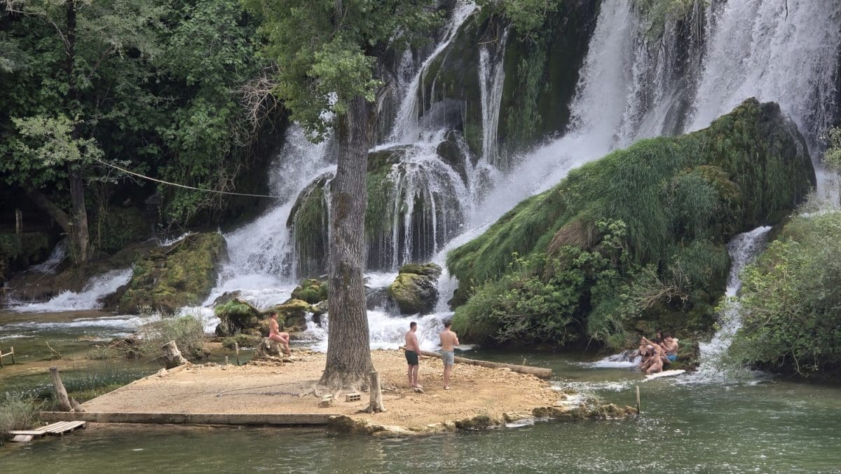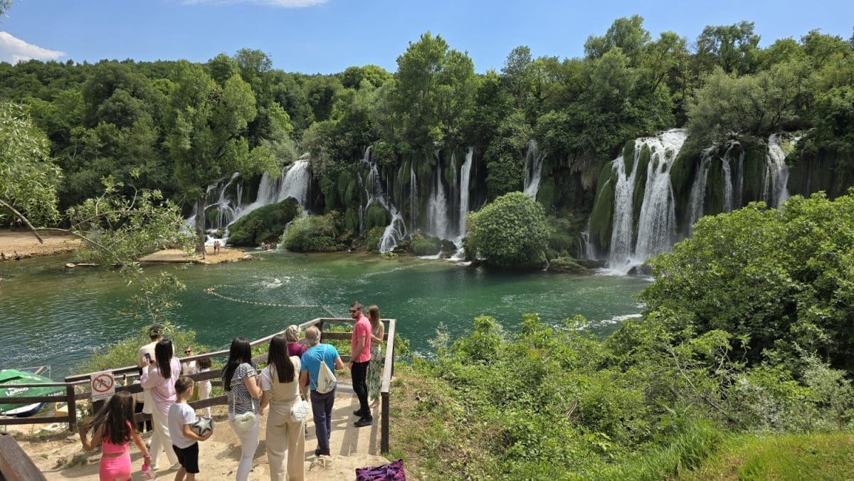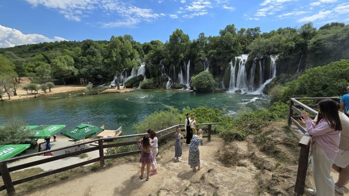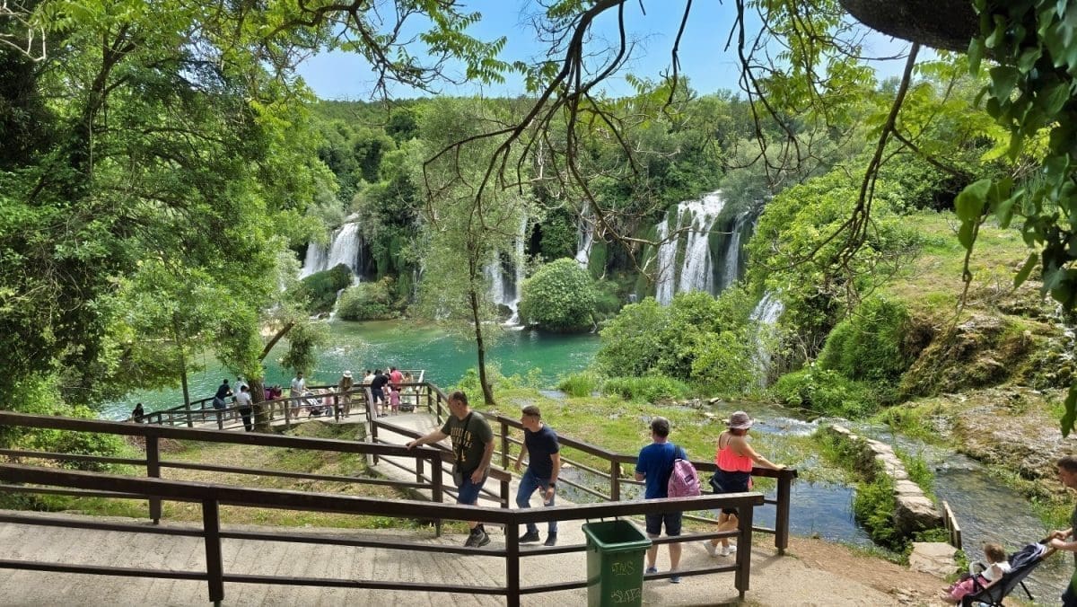 Ako već nije poljoprivredu, vidni napredak je zahvatio obližnje slapove Kravice. Ovaj sad već znameniti slap nalazi se 10 km od Međugorja, u mjestu Studenci kod Ljubuškog. Nalazi se na rijeci Trebižat i ima širinu od 120 metara i visinu od oko 28 metara. Da se je u tijeku ubrzana preobrazba u turističko-posjetiteljsku hit destinaciju svjedoče bageri na već prostranom parkiralištu koje će uskoro postati duplo šire. Autobusi s turistima iz raznih europskih zemalja već su napunili parking, a još nismo ušli u ljeto. Ulaz za odrasle je 10 eura, ali je ljepota onoga što će te vidjeti znatno veća od novaca koje ćete ostaviti na blagajni. Iako voda još nije dosegla vrijednosti temperature za bezbrižno kupanje većine, manjina već itekako uživa. Mi smo iznajmili brodić koji nas je prevezao do samih slapova. Iskusiti tu bliski susret s “prašinom” padajuće i osvježavajuće vode i dotaknuti ovu snagu prirode je neprocjenjivo. Nismo odolijeli zapjevati i pokoju dalmatinsku pjesmu, što je izazvalo oduševljenje okupljenih, naš “kormilar” nas je mrko pogledao tek kada smo zapjevali hajdučku, a kako nismo htjeli testirati temperaturu vode, udovoljili smo njegovoj želji o promjeni repertoara.