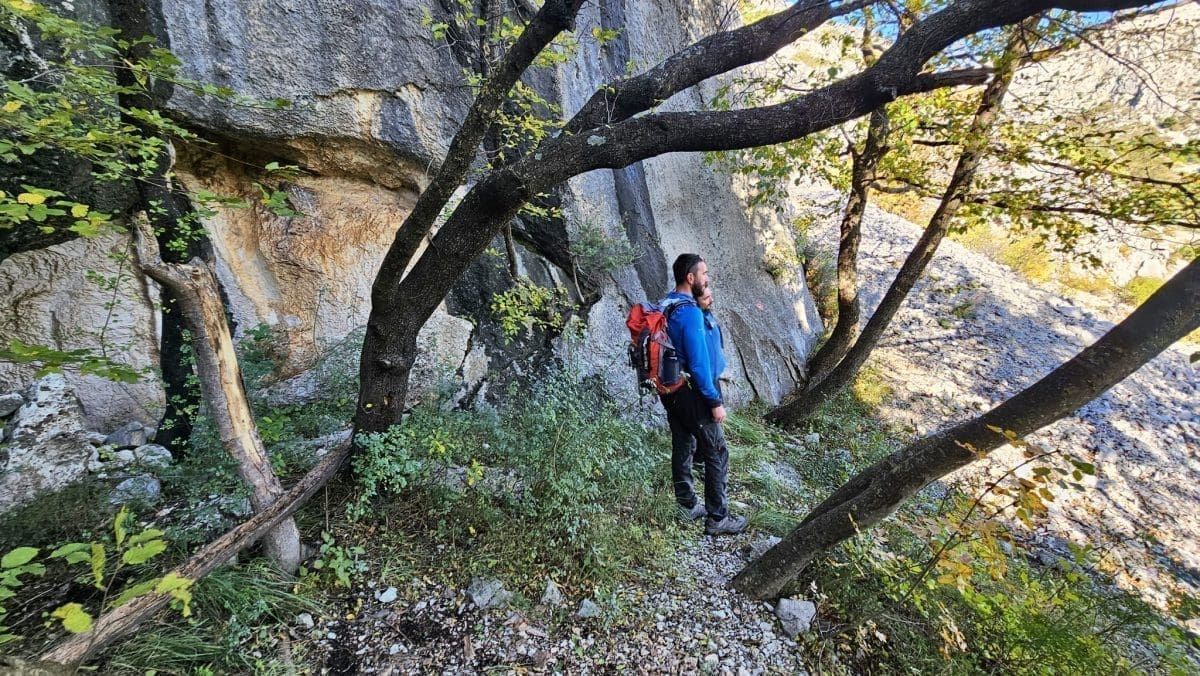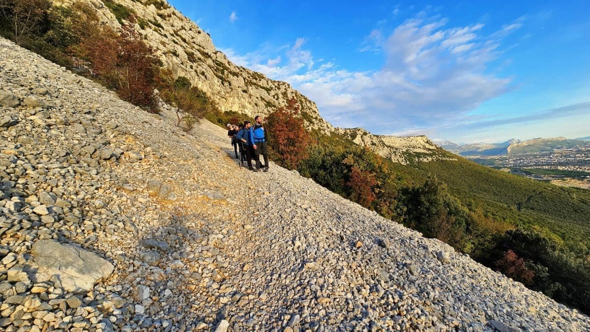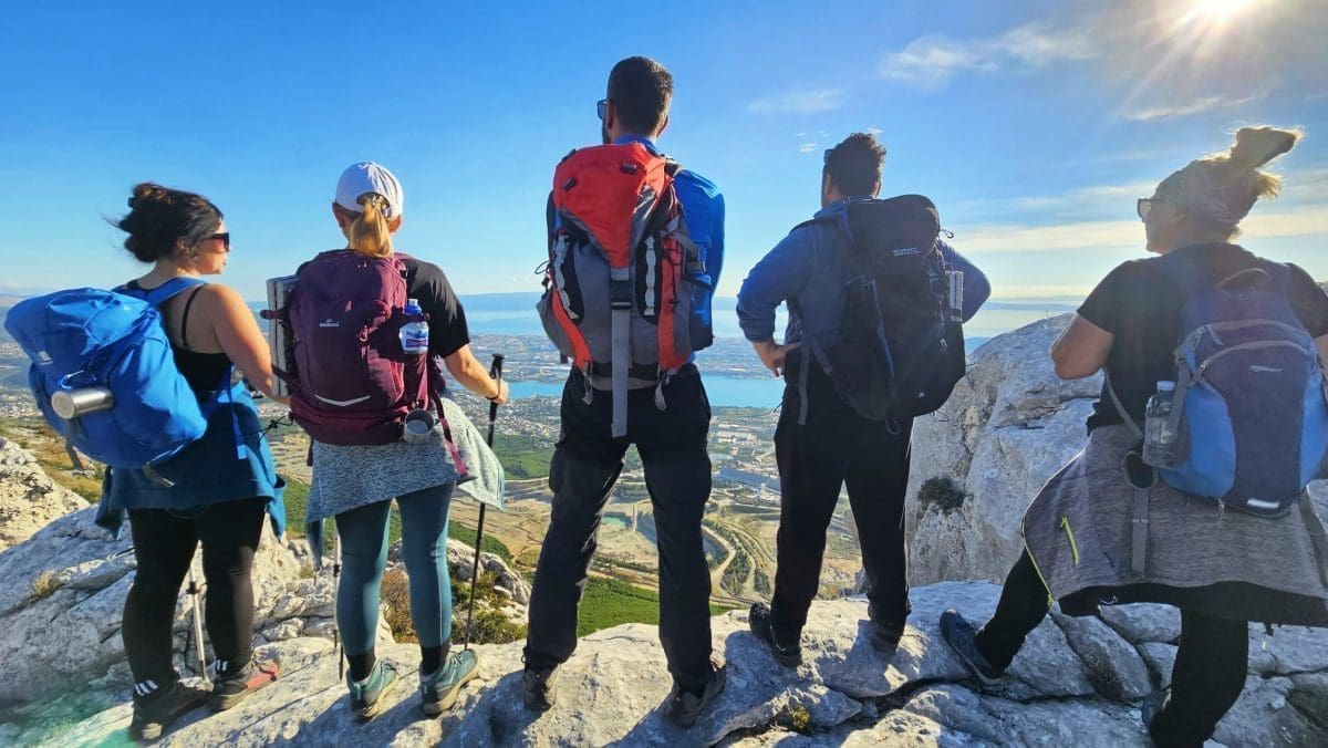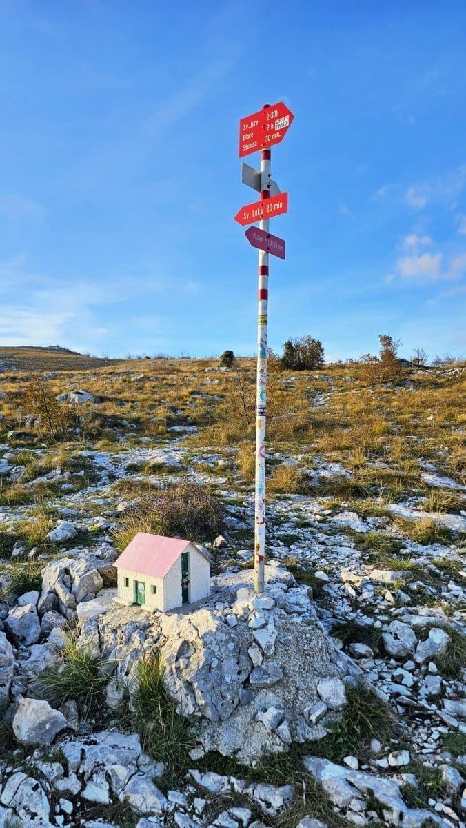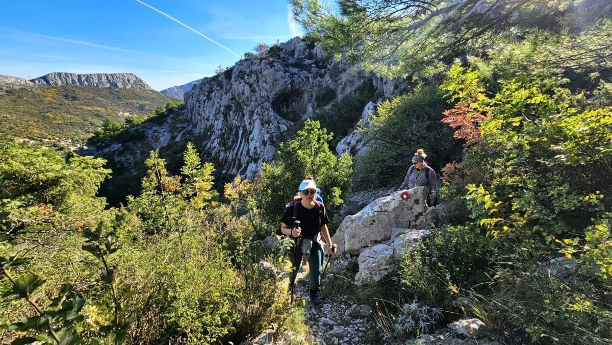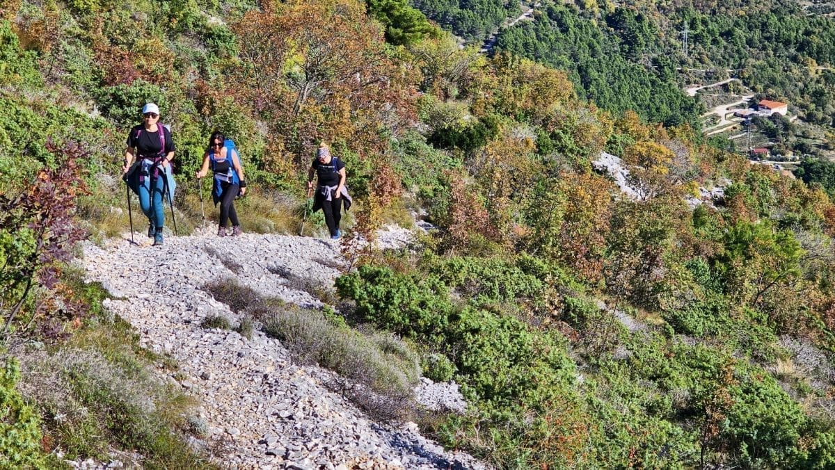 Upravo smo se u sunčano nedjeljno jutro uputili iz Ninčevića gdje smo ostavili automobile. Inače, prethodno smo dva auta parkirali na groblju u Kaštel Sućurcu, gdje će završiti naše planinarenje. Mjesto parkiranja i početka staze možete vidjeti na snimljenom tragu.