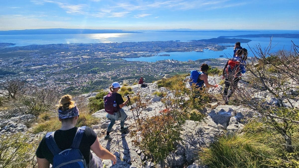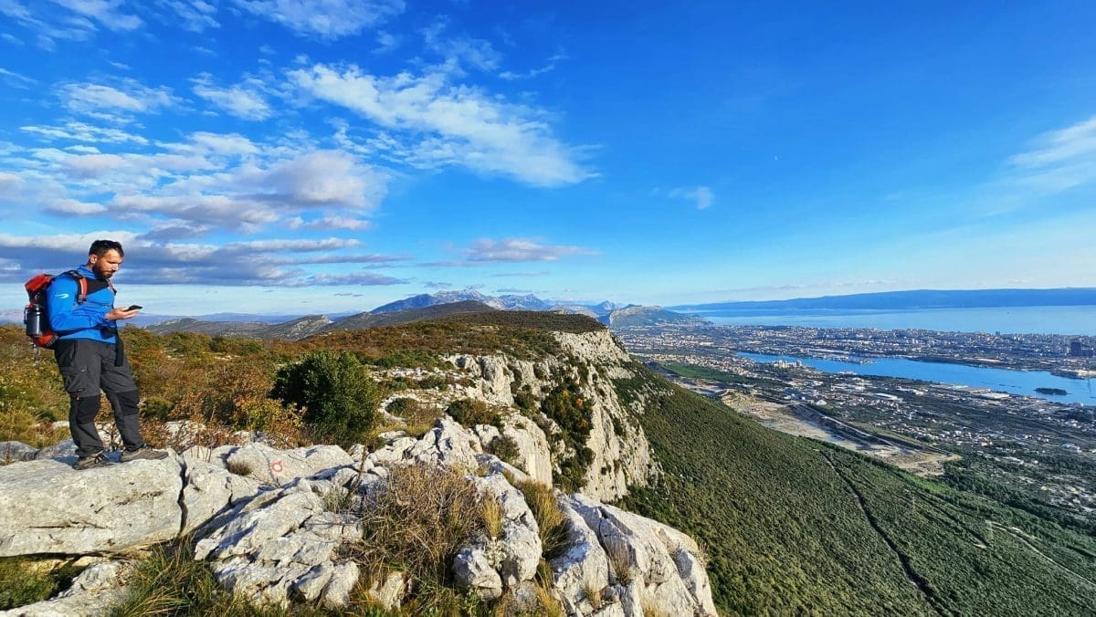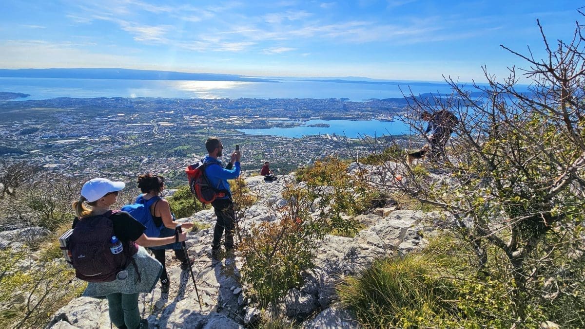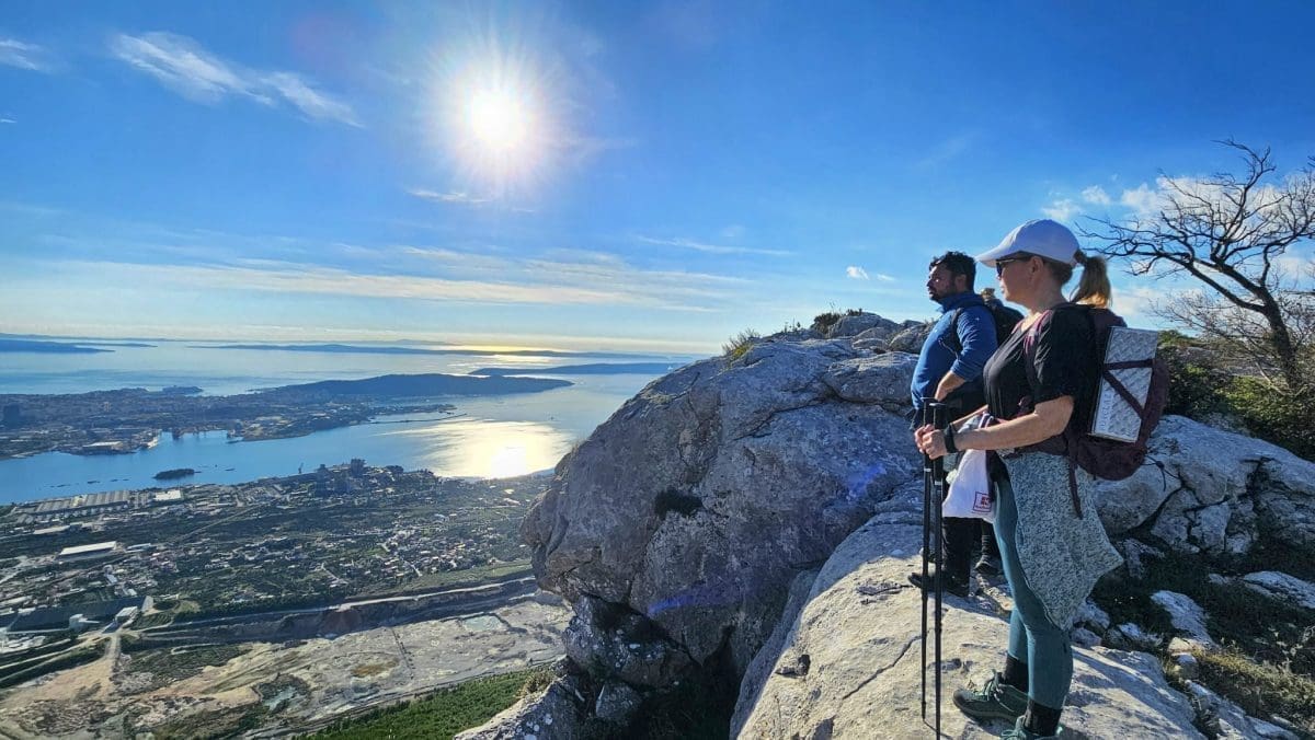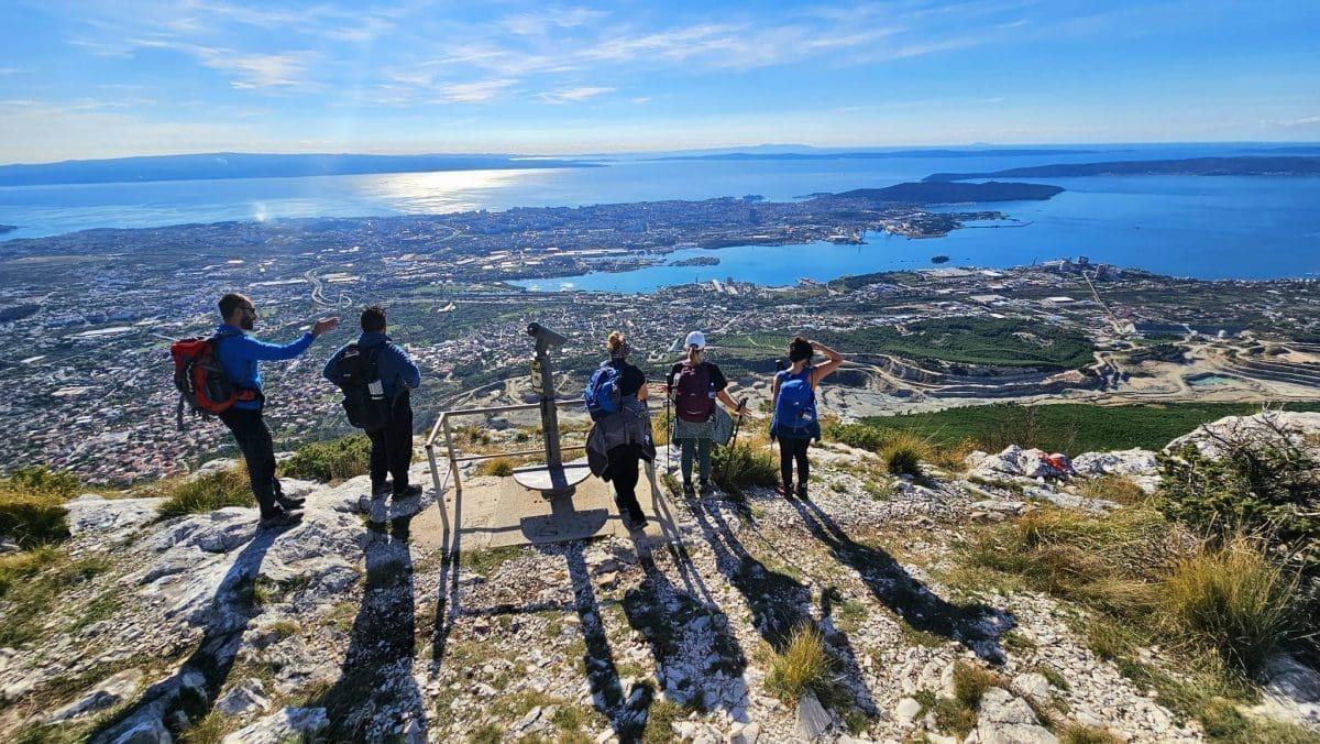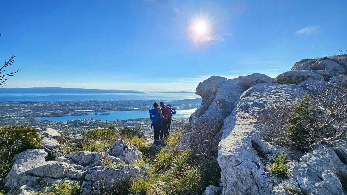 Kod kapelice se prvi put ukazuje panorama Splita i cijele okolice "na dlanu", a vjerojatno se radi o jednom od najupečatljivijih prizora koji se može doživjeti na našim obalnim planinama. Na ovom popularnom vrhu, do kojeg se može doći i automobilom iz Rupotina, susreli smo jedan par iz Rusije koji se nije mogao nadiviti prizorima, te domaću obitelj koja je izvela djecu na svježi zrak. Nakon marende i fotografiranja nastavljamo dalje grebenom na zapad.