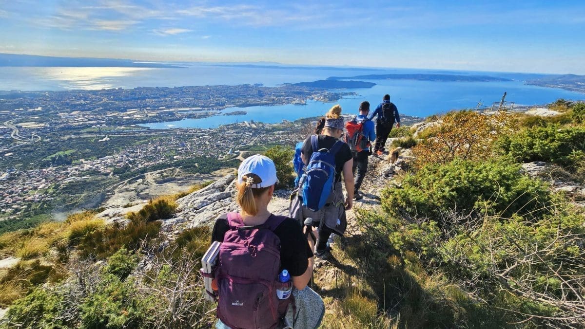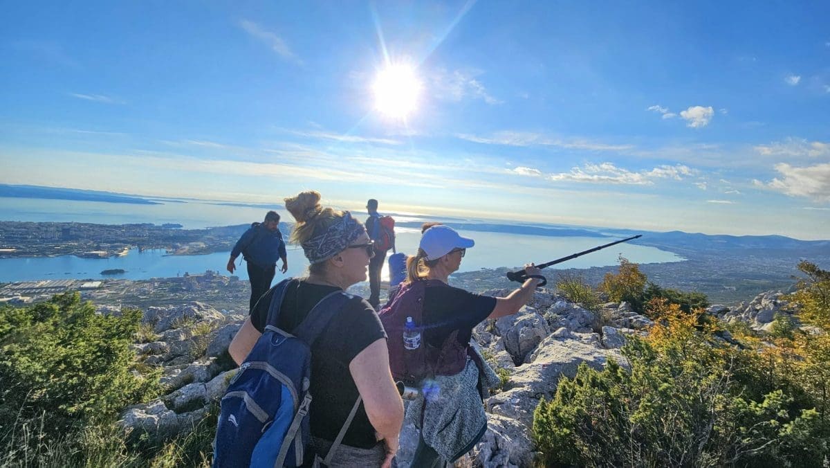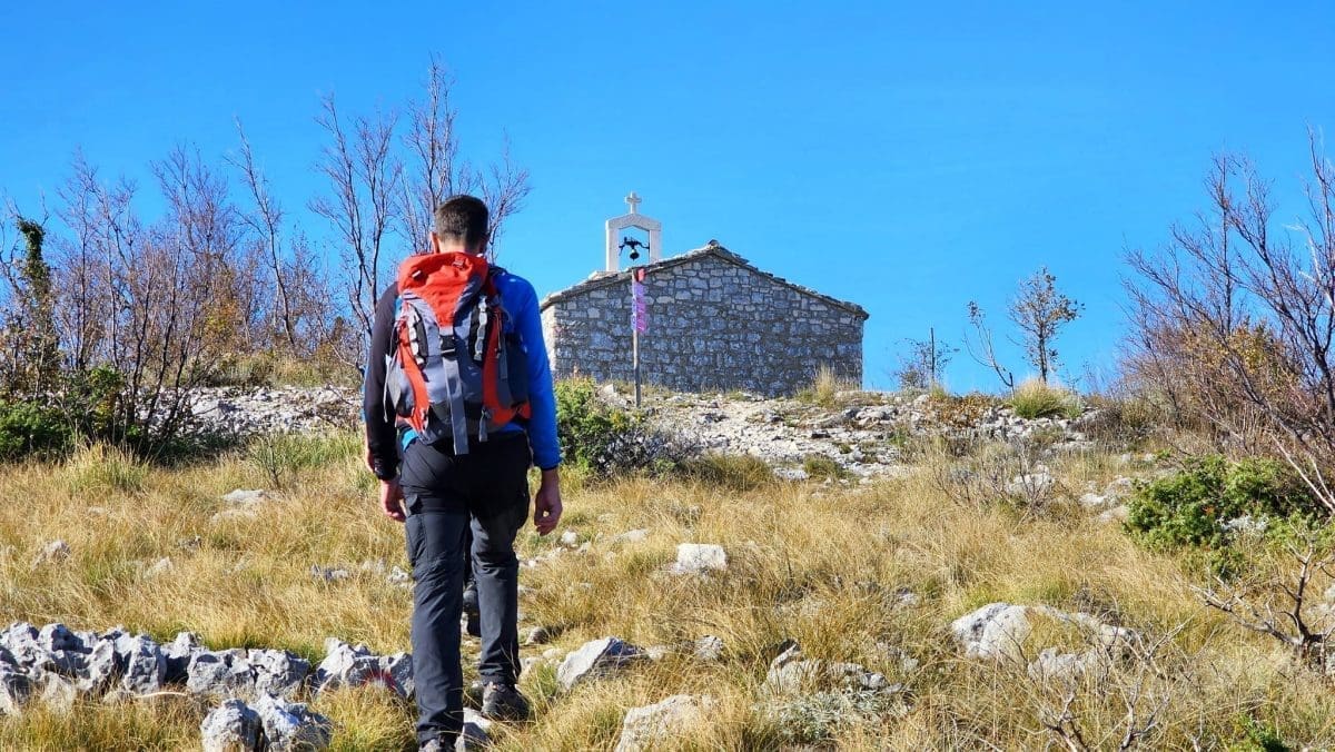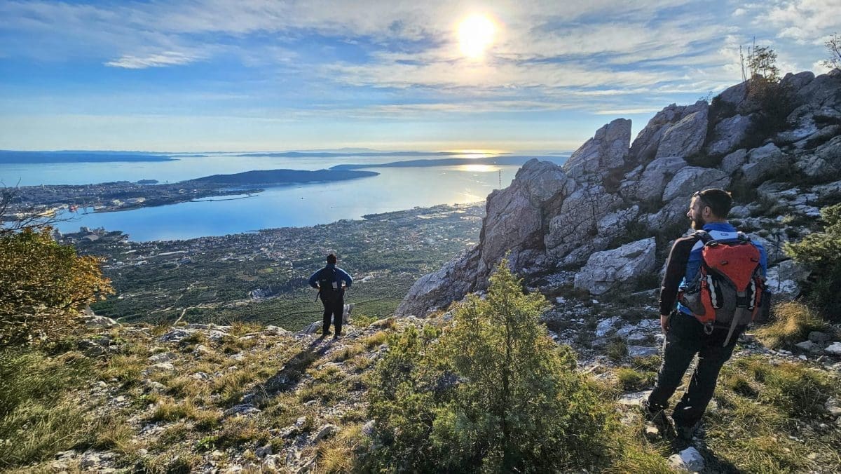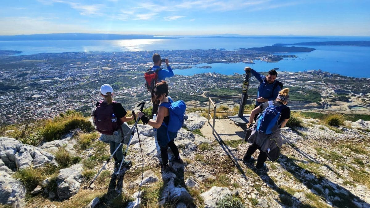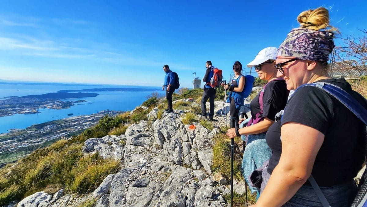 Kod kapelice se prvi put ukazuje panorama Splita i cijele okolice "na dlanu", a vjerojatno se radi o jednom od najupečatljivijih prizora koji se može doživjeti na našim obalnim planinama. Na ovom popularnom vrhu, do kojeg se može doći i automobilom iz Rupotina, susreli smo jedan par iz Rusije koji se nije mogao nadiviti prizorima, te domaću obitelj koja je izvela djecu na svježi zrak. Nakon marende i fotografiranja nastavljamo dalje grebenom na zapad.