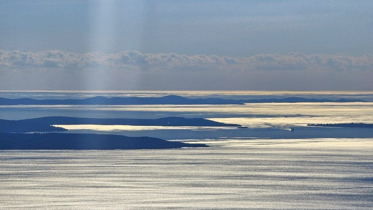 Tada nas je priroda još jednom odlučila počastiti, naime, nakon zalaska Sunca na horizontu se pojavila Italija, točnije masiv Gran Sasso s najvišim vrhom Corno Grande (2912 m). Prizor se mogao vidjeti gotovo sat vremena.