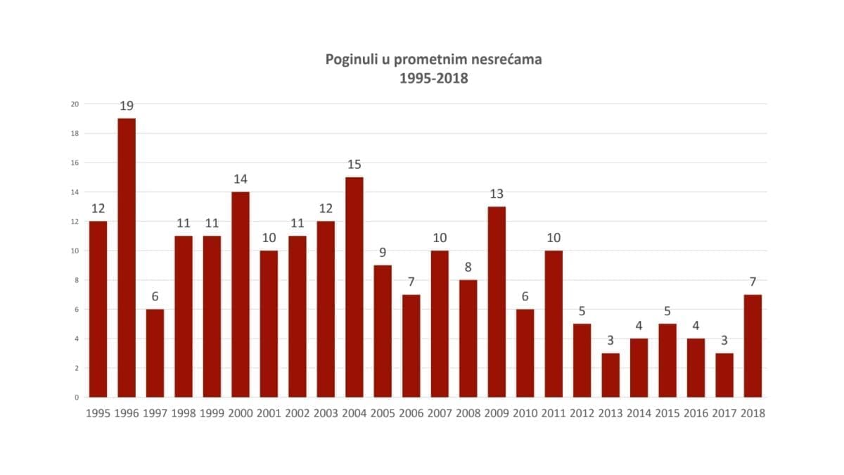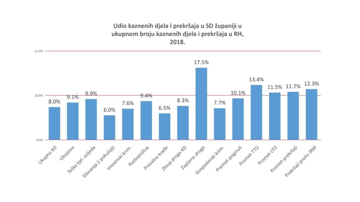 Dok se konačni podaci za 2019. čekaju, posebno je indikativan broj poginulih u prometnim nesrećama. Posljednje 23 godine broj je u stalnom prosječnom opadanju. Rekordne 1996. u županiji je bilo 19 smrtnih slučajeva, 2018. 7, a godinu dana prije rekordno niska tri smrtno stradala. Sličan trend je s teško ozlijeđenima u prometnim nesrećama. 1996. ih je bilo 221, a lani 93. U prosjeku, nešto manje od 11 posto svih kaznenih djela i prekršaja u Hrvatskoj dogodi se u Splitsko-dalmatinskoj županiji, što znači da s obzirom na broj stanovnika, županija ni po čemu ne odskače od državnog prosjeka.