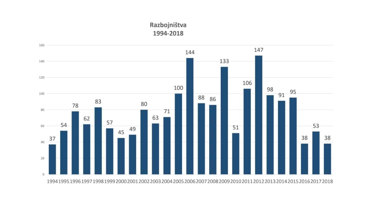 Detaljan grafički prikaz službenih policijskih podataka pogledajte ovdje: