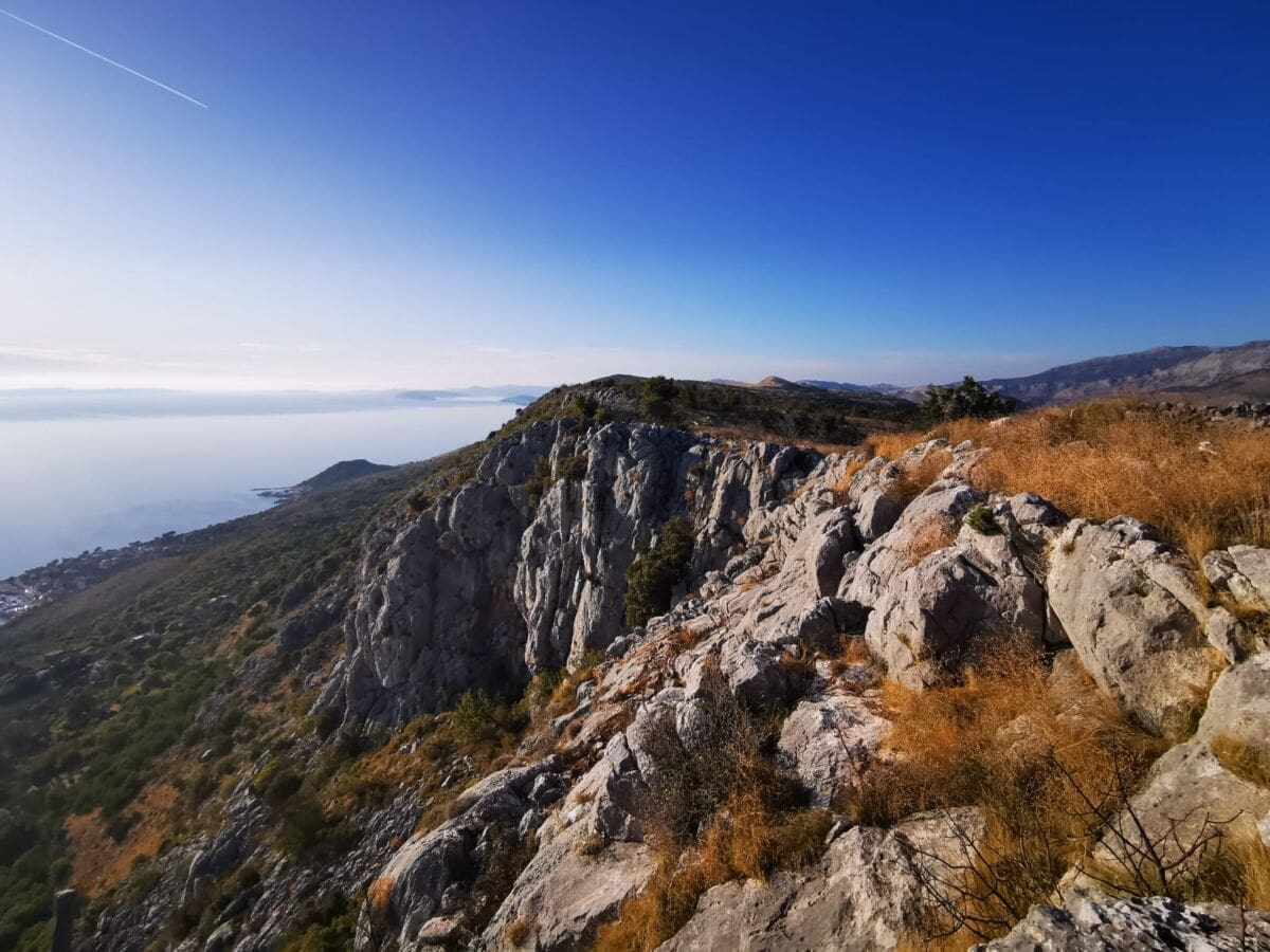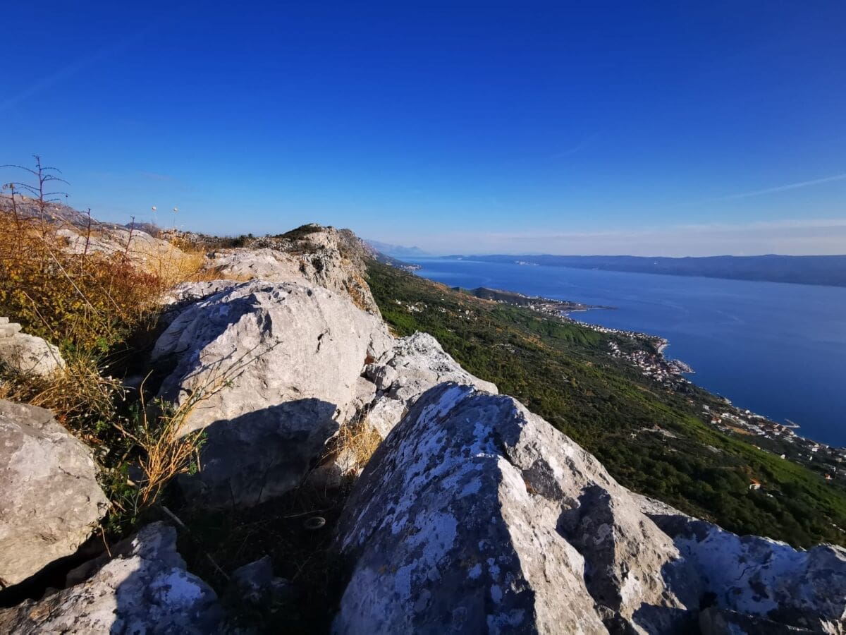 Nakon toga penjemo se planinarskom stazom prema grebenu Peruna odakle "puca" veličanstven pogled na Dugi Rat, Jesenice, Podstranu, Brač, Hvar, Mosor...