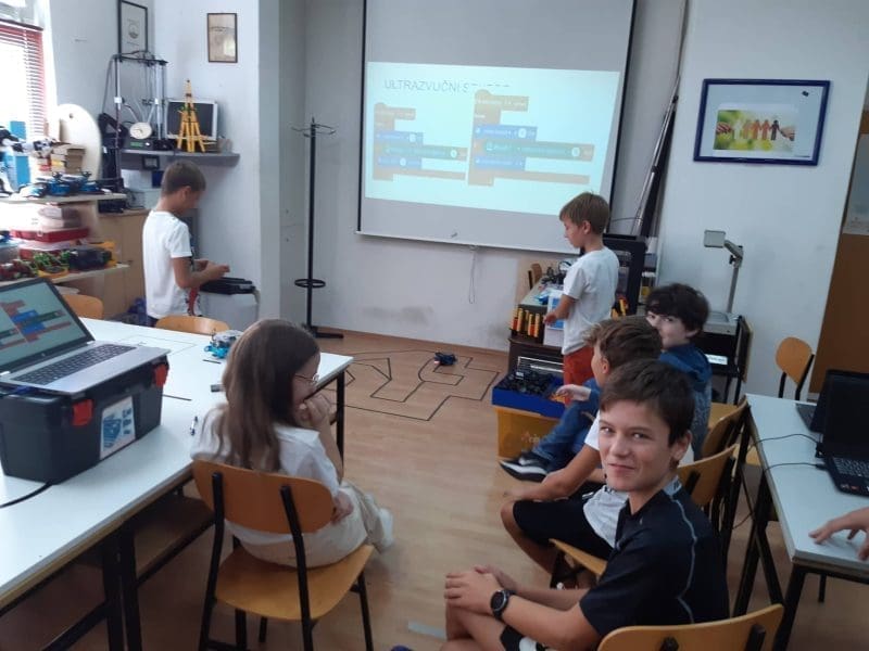 Danas je na rasporedu bila besplatna mBot2 radionica na kojoj je sudjelovalo 7 učenika osnovnoškolskog uzrasta. U sklopu mBot 2 radionice učenici su usvojili specifična znanja o robotici kao području tehnike pomoću edukativnih robota mBot 2. Učenici su upoznali mehaničke i elektroničke sastavnice robota te pojmove vezane za dijelove, izradu i upravljanje robotima. Po završetku radionice učenici su samostalno upravljali robotima i uspješno izvršili sve zadatke.