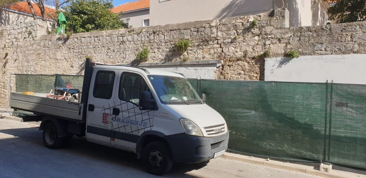 Danas se radi prva faza u kojoj se planira odštemati betonska podloga koliko je to god moguće bez oštećenja zida. Vidjet će se što će biti ispod, ali u svakom slučaju nakon prve faze slijede finiji radovi.