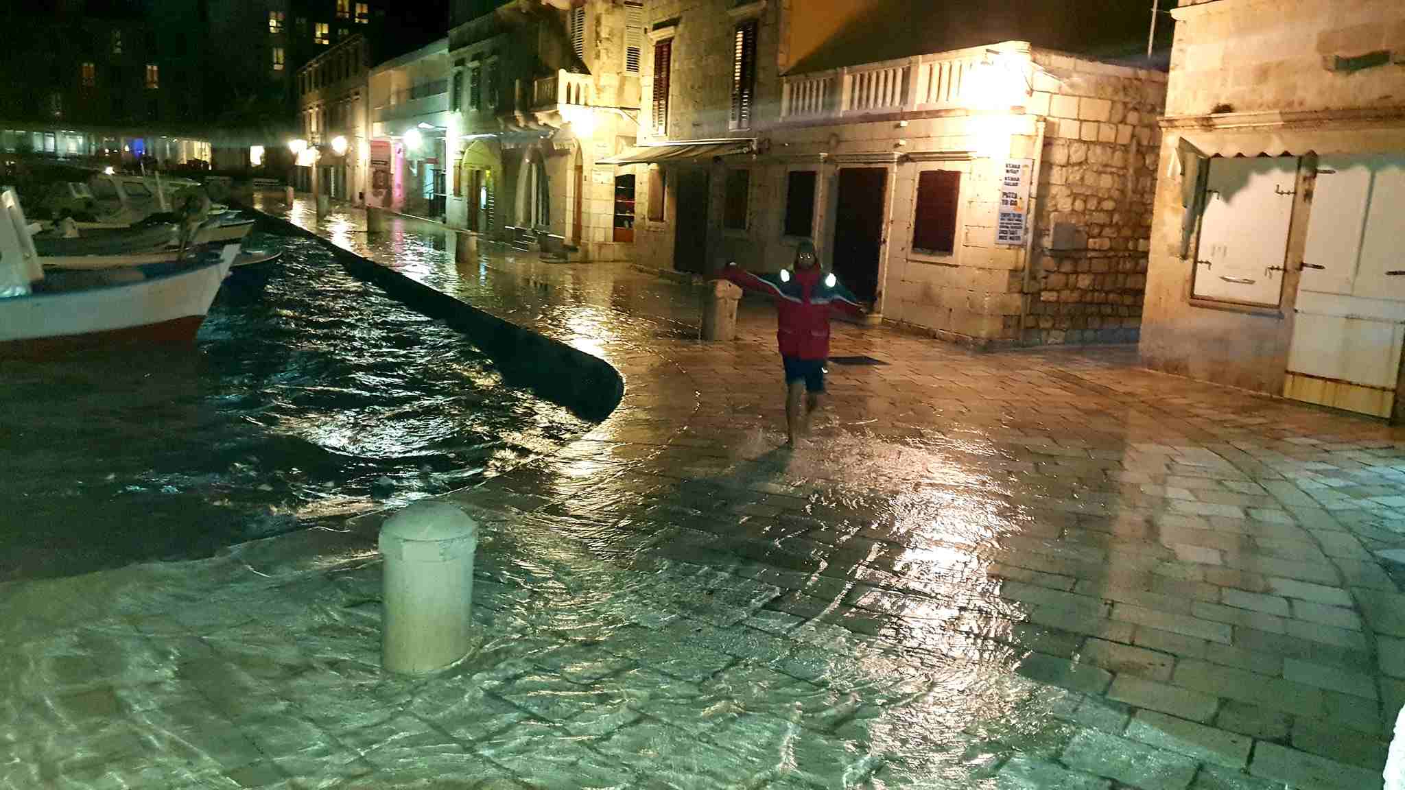 Utorak je donio smirivanje vremenskih prilika diljem Jadrana. U većini se predjela razvedrilo, a vjetar je znatno slabiji u odnosu na jučerašnji dan. Kako je i bilo najavljeno, neki dijelovi Dalmacije dobili su ekstremno velike količine oborina. Primjerice u Imotskom je zadnjih 36 sati palo 205 litara kiše po kvadratnom metru, što je novi oborinski rekord za listopad.