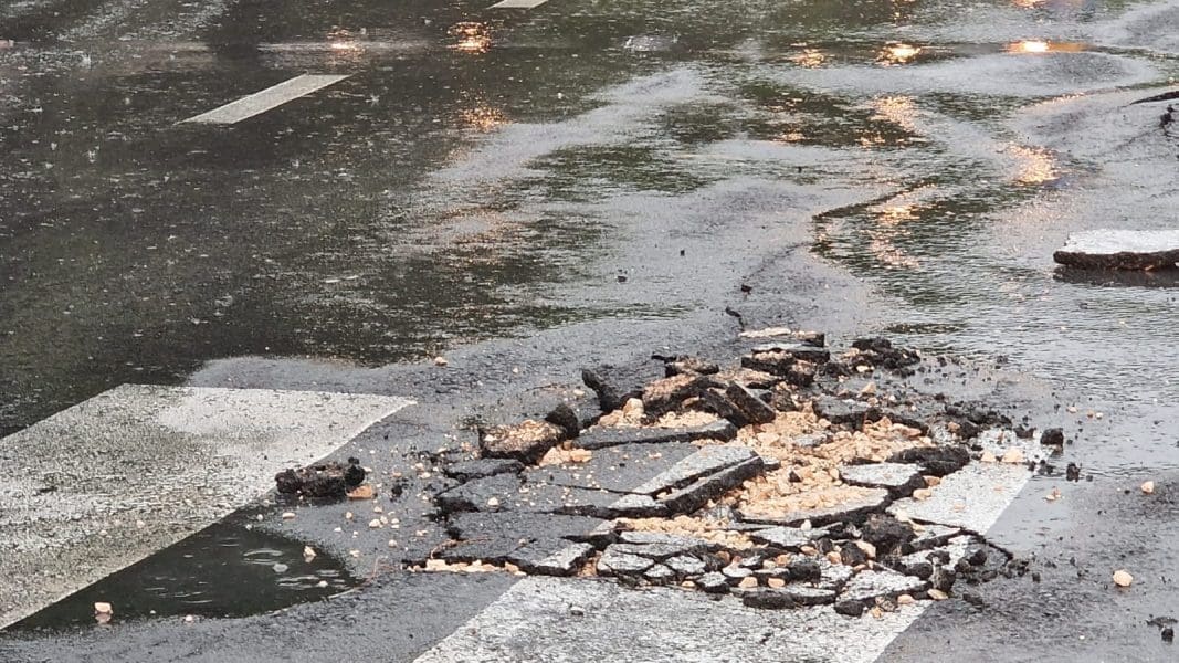 Kišna bujica na nekoliko mjesta oštetila je, odnosno odigla asfalt.