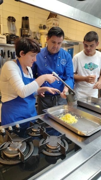 Ekipa iz Juraja Bonačija pripremala je s timom chefa Željka Nevena Bremeca domaće njoke s lososom, peciva, salatu i rožata, a radionica je održana u sklopu edukacijskog paketa projekta Kuhinja znanja (UP.02.3.1.03.0137.) / Jačanje poslovanja društvenih poduzetnika – faza I sufinanciranog kroz program „Učinkoviti ljudski potencijali“ u sklopu Europskog socijalnog fonda, „Zajedno do fondova EU“. Riječ je o projektu kojem je glavni cilj je da se unaprijede znanja i vještine zaposlenika ŠKMER-a, te zaposle mlade osobe, posebice one u nepovoljnom položaju.