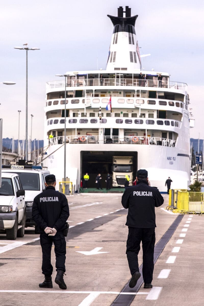 Jutros je u splitsku luku uplovio trajekt iz talijanske Ancone. Na njemu je bilo 93 putnika. Na trajekt su, odmah po uplovljavanju u luku, ušli sanitarni inspektori i policija s maskama i rukavicama, piše N1.
