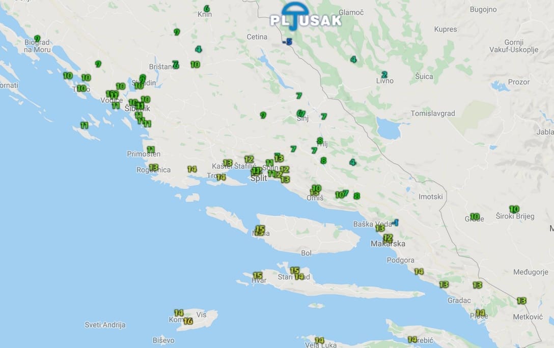 Bura je na splitskom području zapuhala oko 17:30 i odmah ima udare do 80 km/h. Kiša je prešla u snijeg na Dinari i Kamešnici, a snijeg pada i u višim predjelima Aržana.