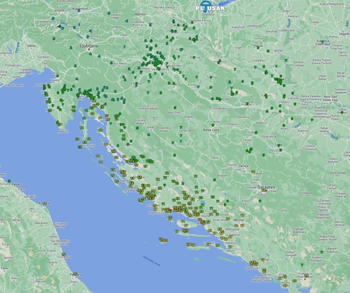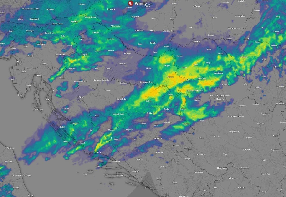 Značajnija kiša tijekom srijede u Dalmaciji je pala isključivo na njenom krajnjem sjeveru, oko Paklenice. Drugdje su količine bile skromne, od 1 do 5 litara, a južnije od doline Neretve bilo je suho.