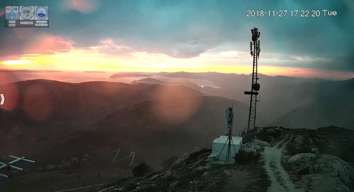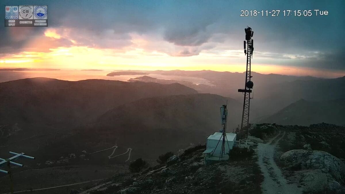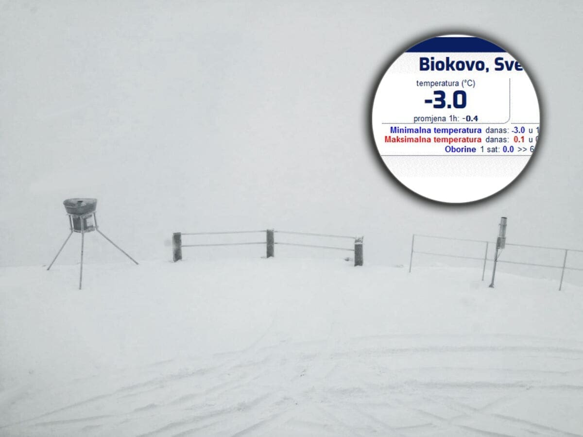 Na Mosoru je kasno poslijepodne počeo padati prvi ovosezonski snijeg, ali samo u najvišim dijelovima planine. Ipak, u ranim večernjim satima snježna granica se počela spuštati. U 17 sati na Zvjezdanom selu Mosor temperatura je pala na 3,7°C.