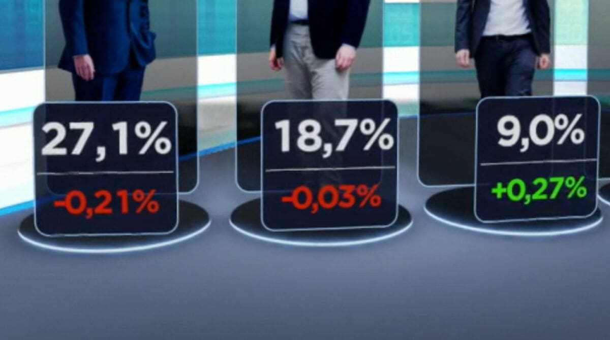S druge strane, samo su dvije stranke od centra lijevo koje prelaze izborni prag. Ali zbroj njihovih postotaka pretočen u mandate nije ni blizu nužnih 76.