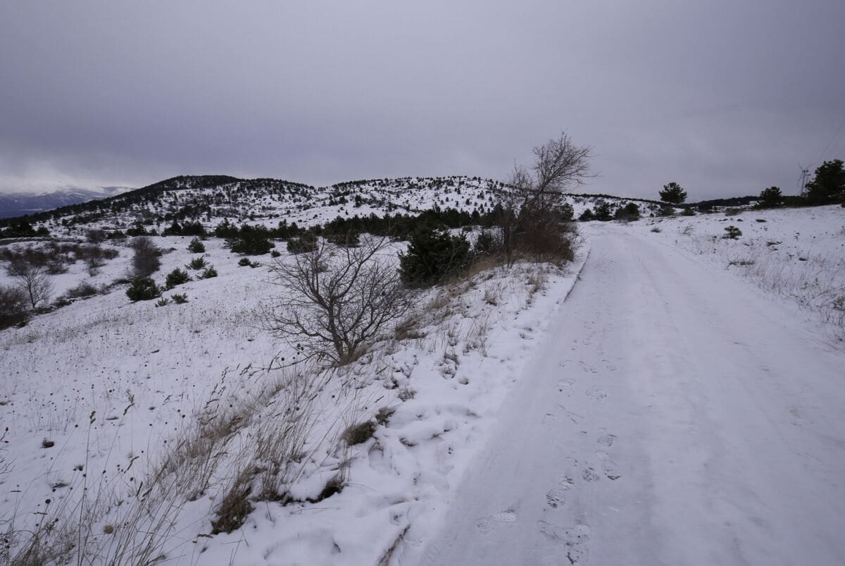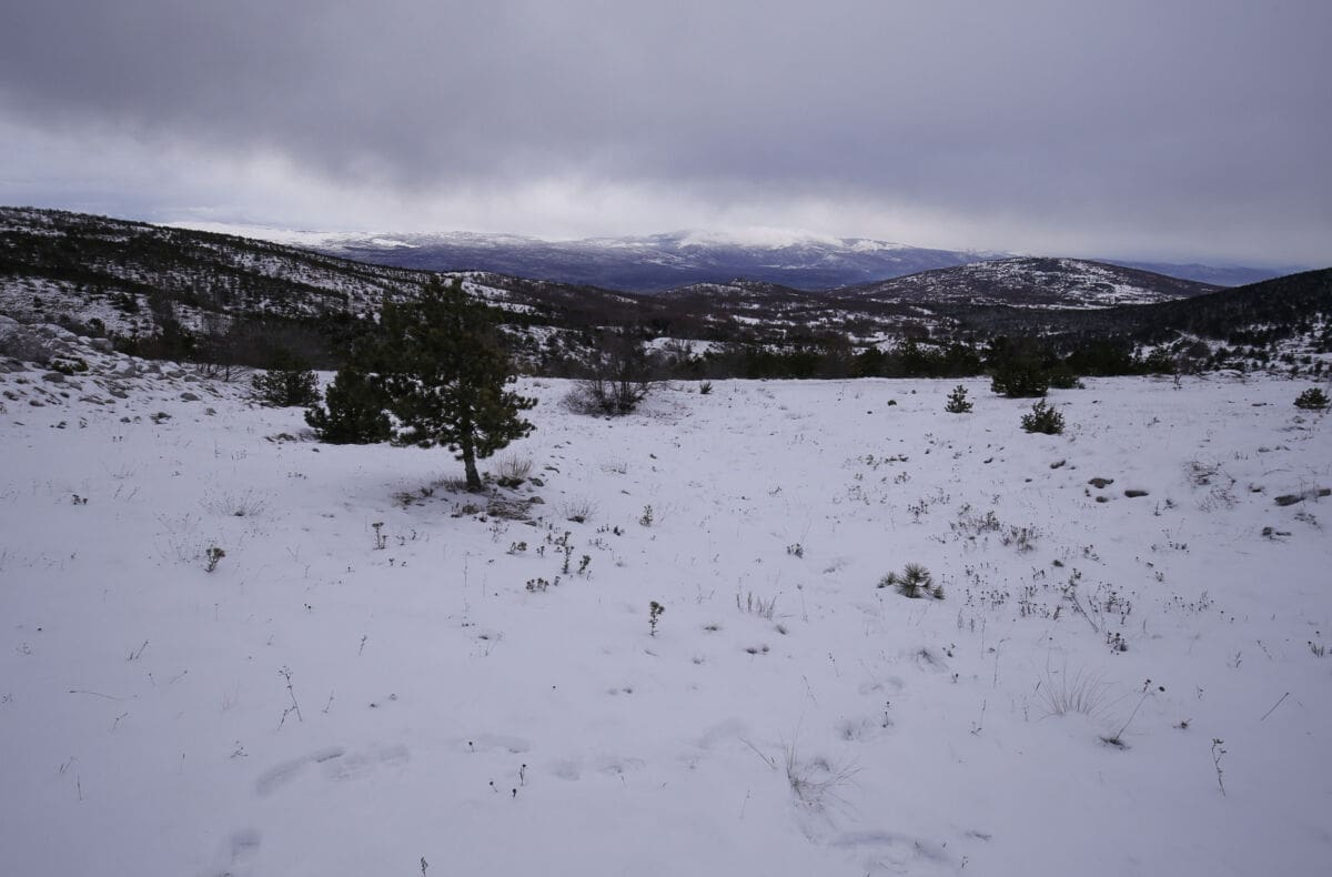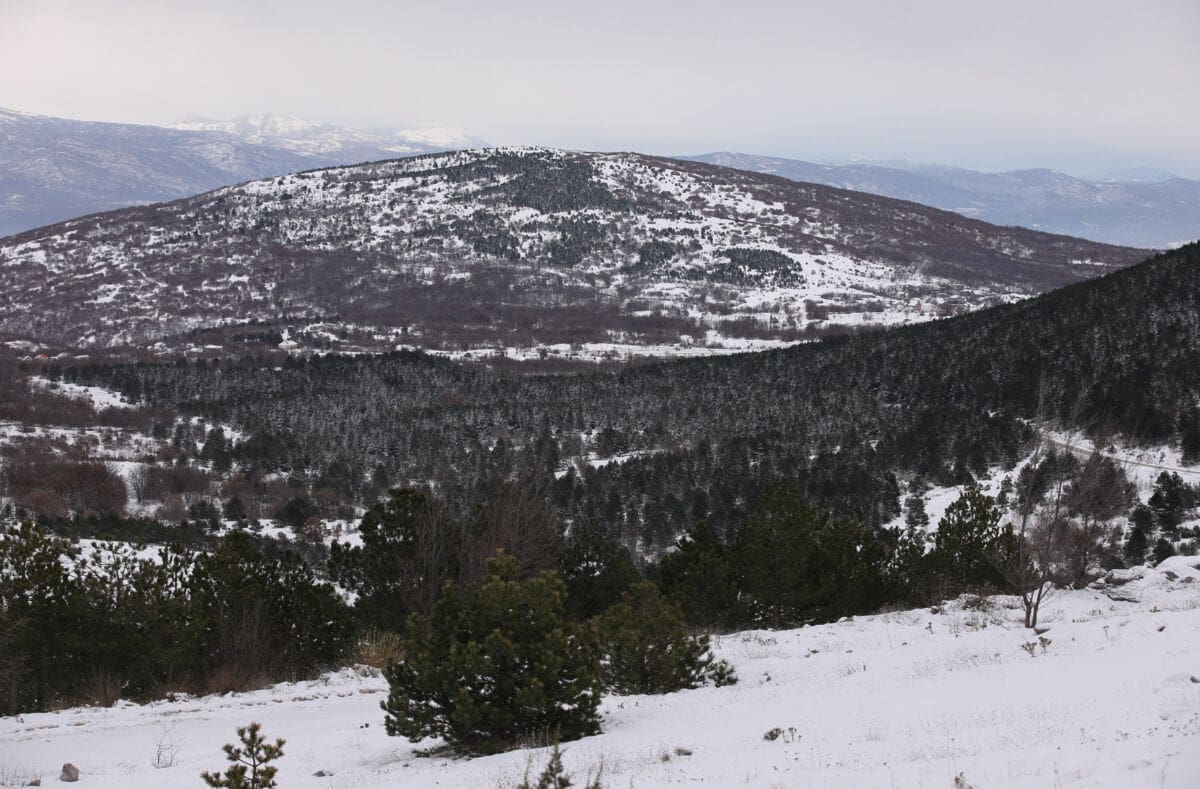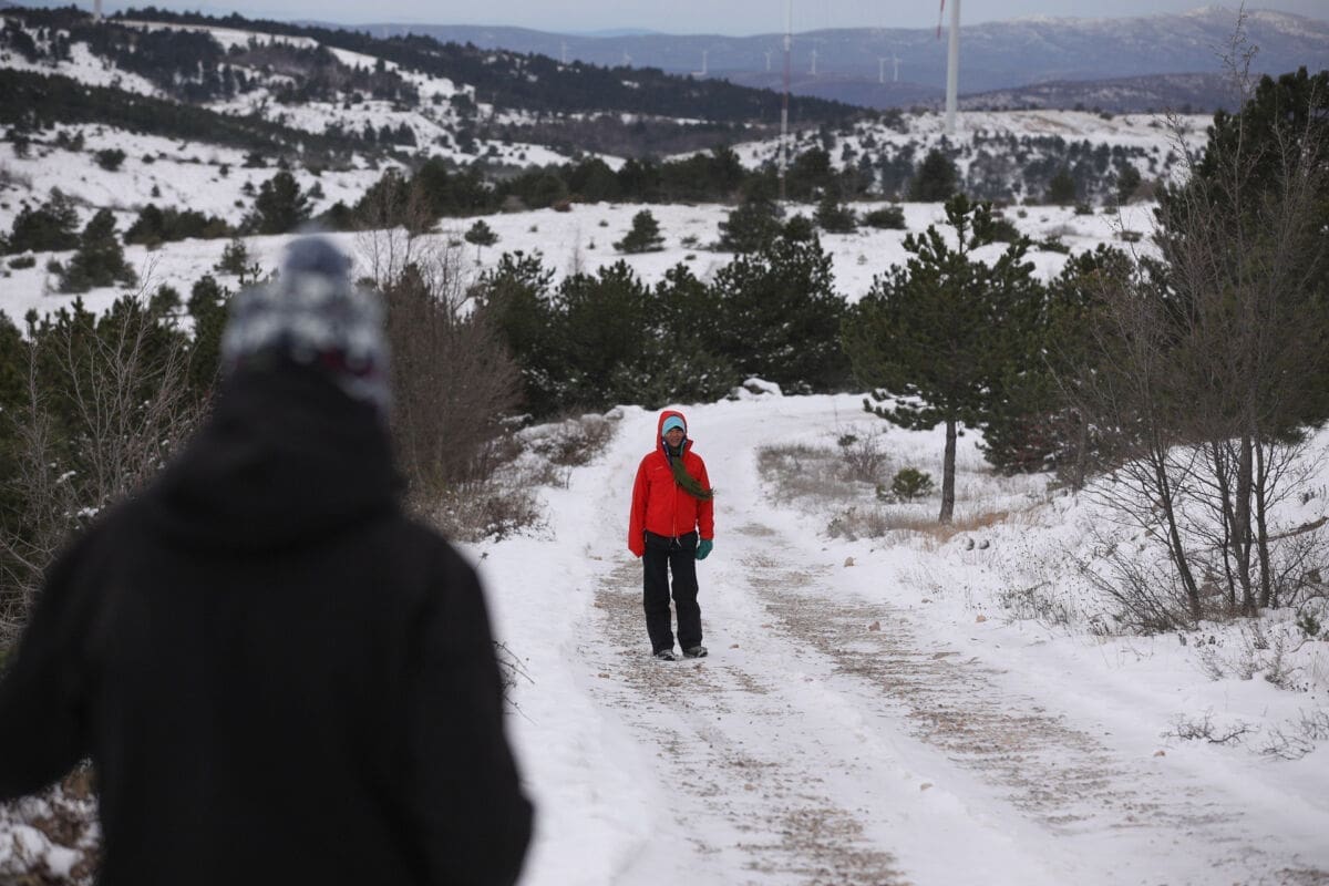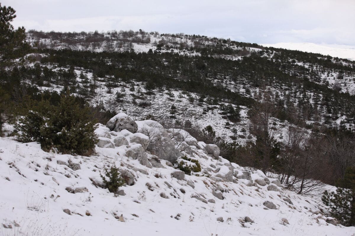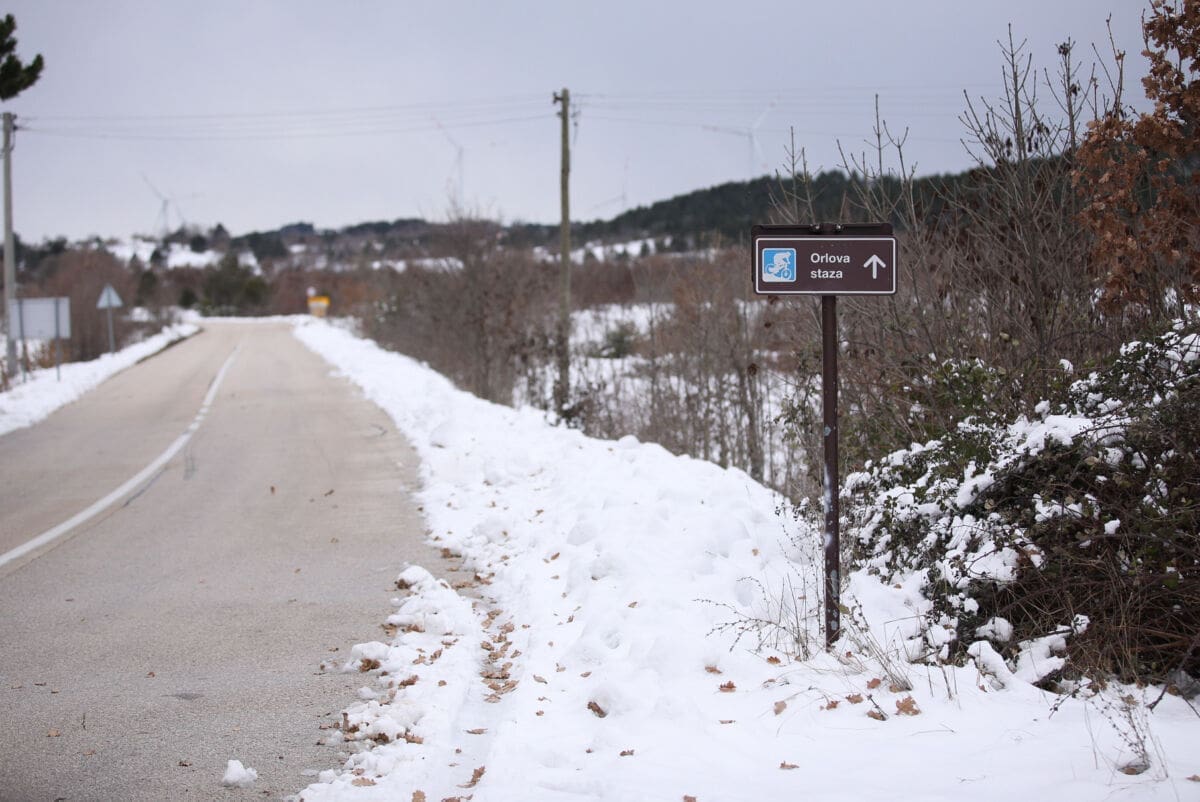 Prošle je noći snijeg ponovno zabijelio dio Dalmatinske zagore, osobito više planine. Tijekom dana uputili smo se planinarskim putem prema Orlovim stinama.