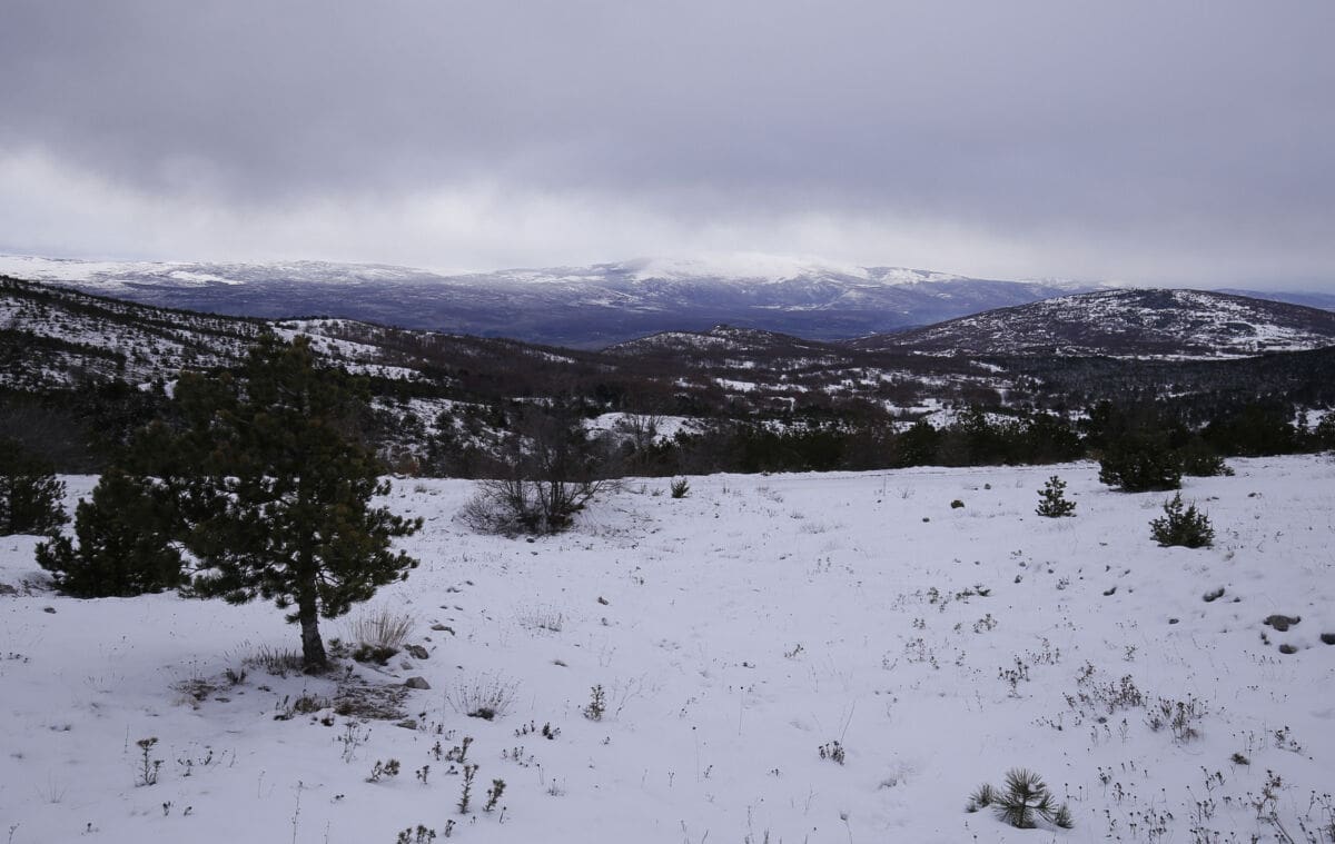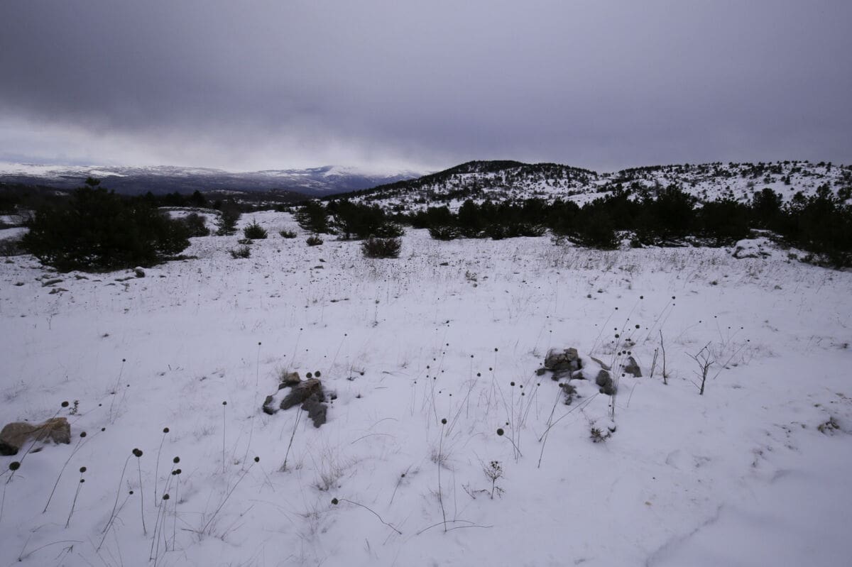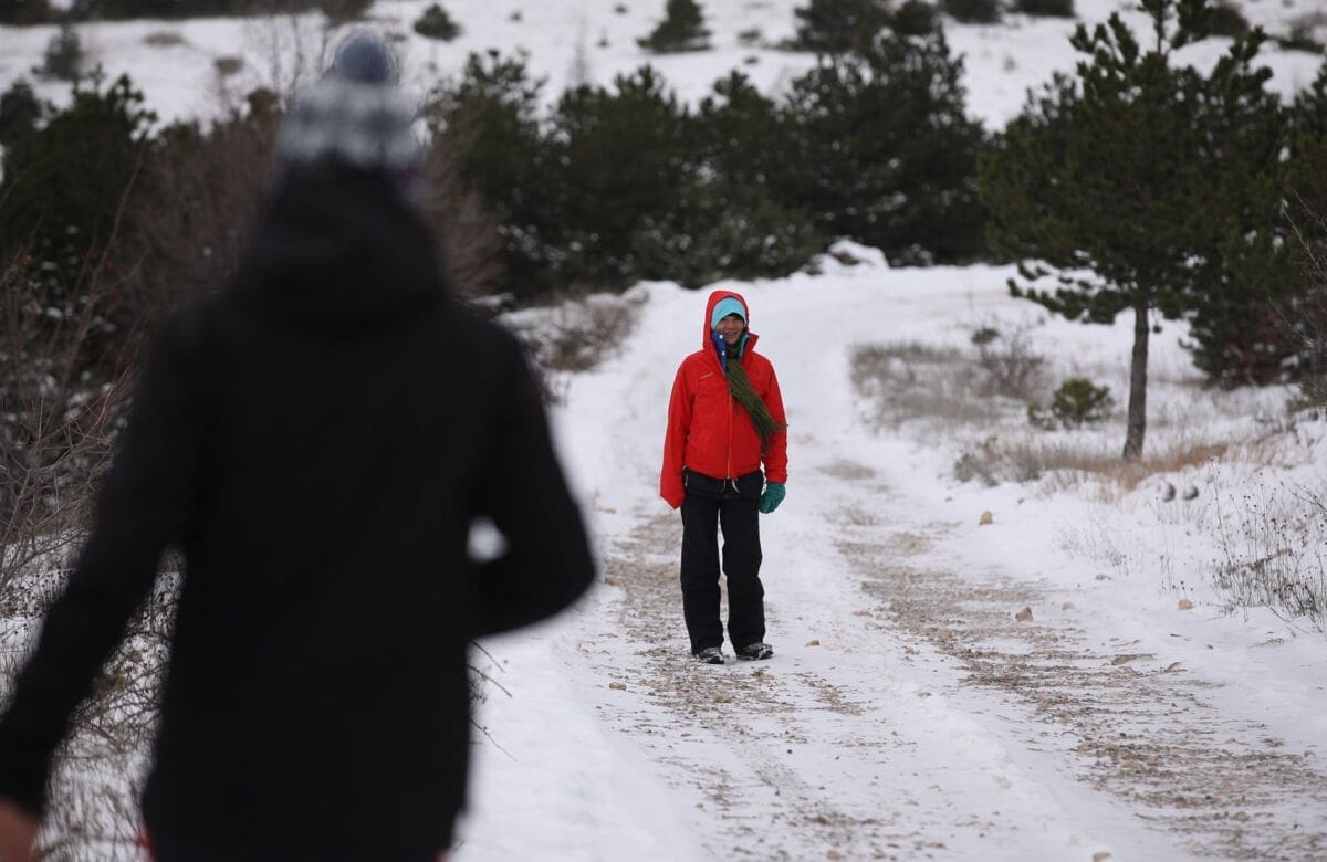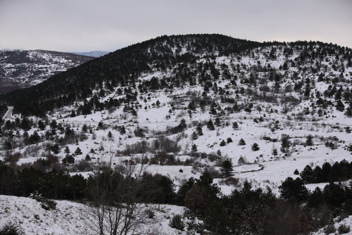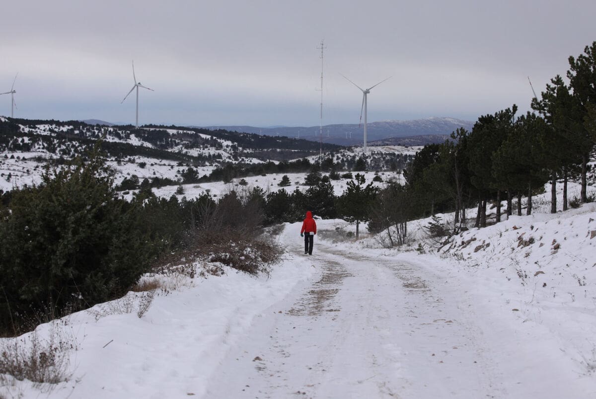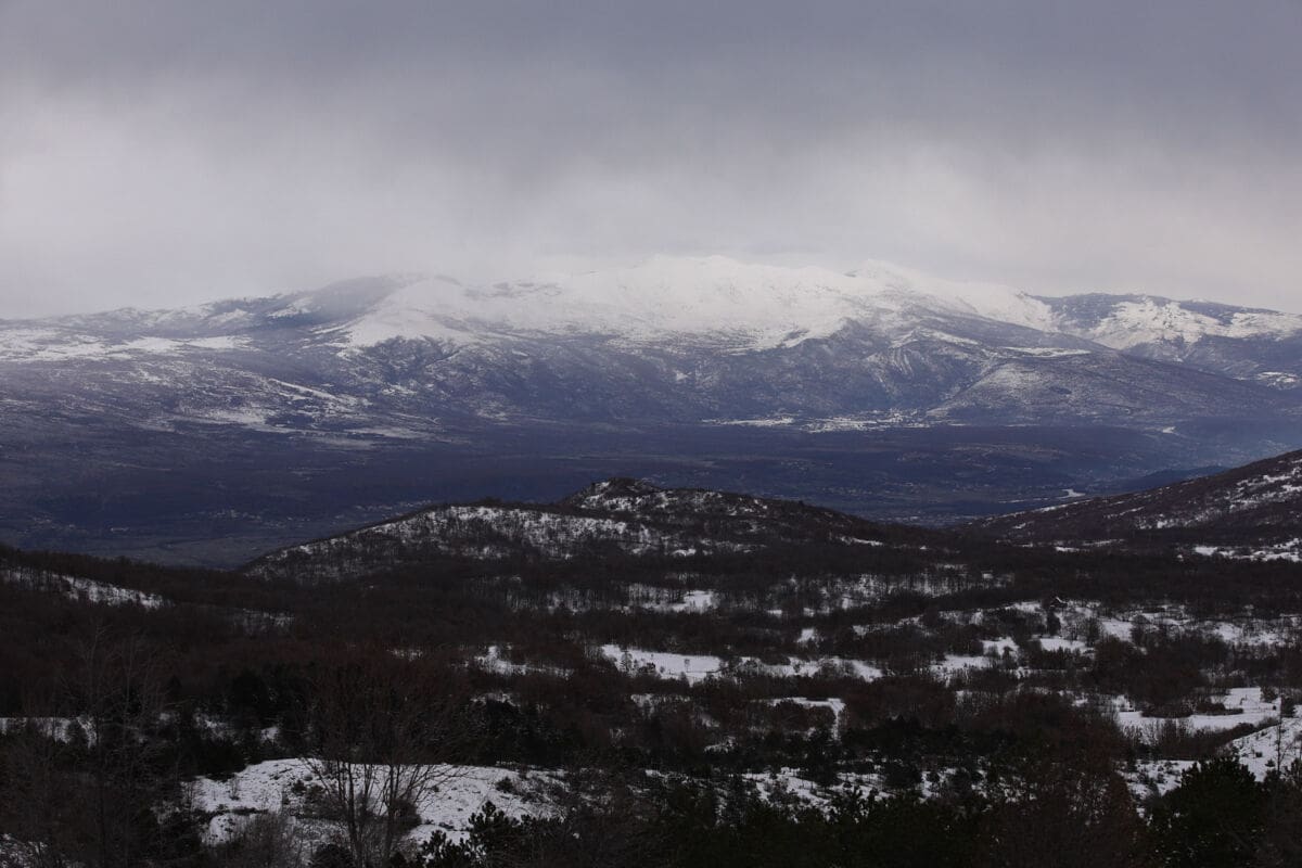 Prošle je noći snijeg ponovno zabijelio dio Dalmatinske zagore, osobito više planine. Tijekom dana uputili smo se planinarskim putem prema Orlovim stinama.