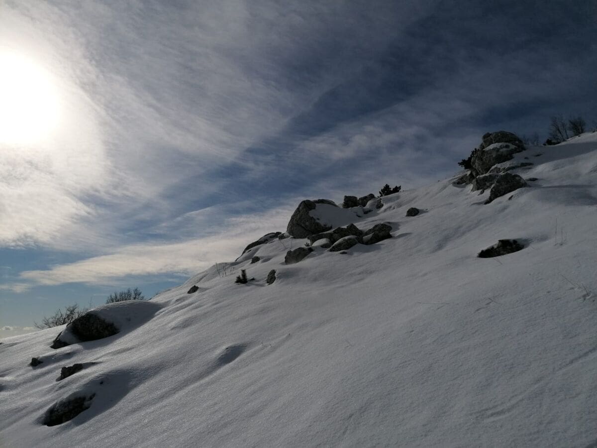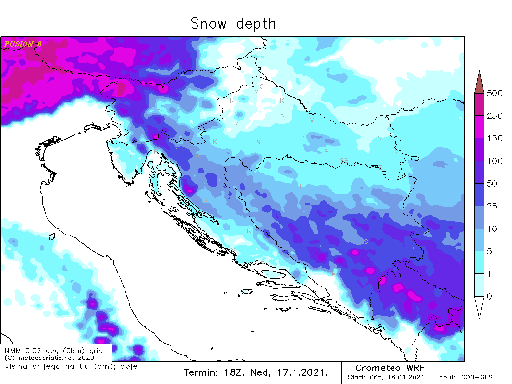 U nedjelju će biti više oblaka nego u subotu, a snježnih pahuljica povremeno će biti čak i na otocima. Neki prognostički modeli predviđaju i stvaranje tankog snježnog pokrivača ponegdje i do same obale. Ipak, oborine će biti općenito slabe, neće ih biti posvuda i navečer će prestati.