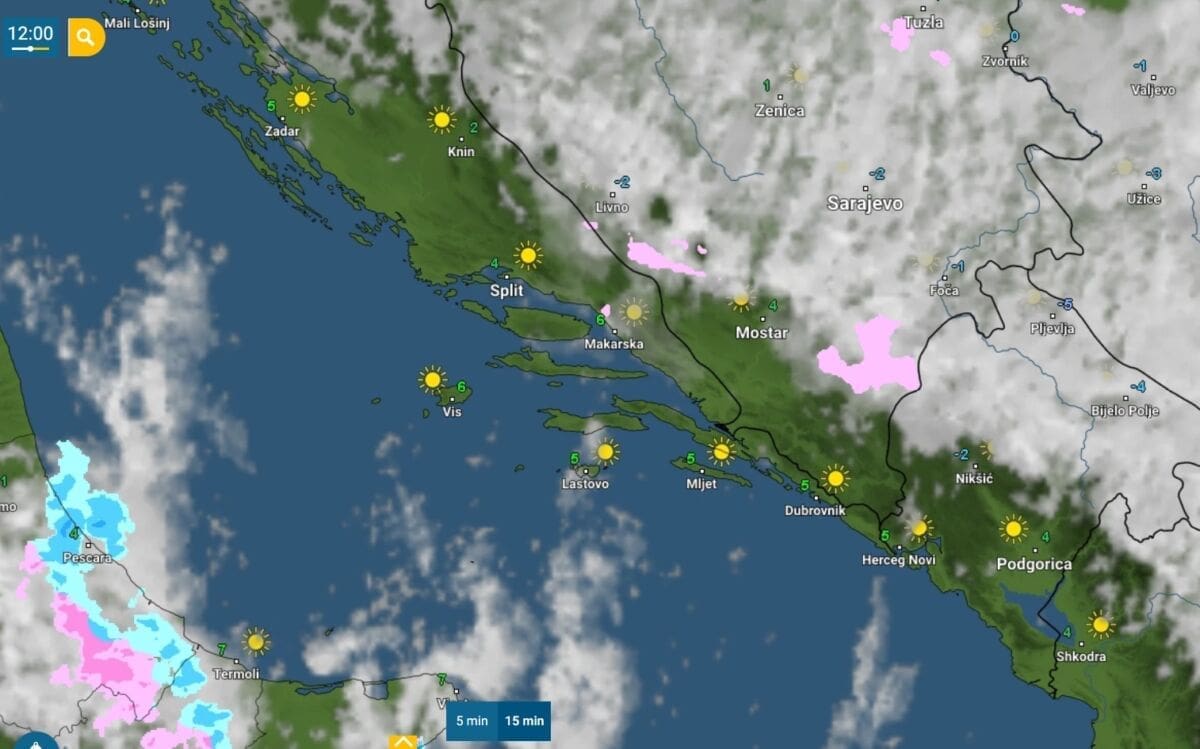 Za nama je pravo zimsko jutro koje je donijelo mraz velikom dijelu Dalmacije. Najnižih -9°C izmjereno je u Šabića stajama, ispod Vošca na Biokovu. Prema podacima mreže Pljusak.com, -7°C je izmjereno u Ljubitovici, -6°C u Zemuniku i Veloj Njivi, -5°C na Promini, -4°C u Rudi, -3°C na Zvjezdanom selu Mosor, Trilju i Otoku... Slabog mraza bilo je i ponegdje uz obalu i na otocima. Primjerice, u Blatu na Korčuli jutros je bilo -2°C. Uz olujnu buru osjet hladnoće je u mnogim mjestima jutros bio ispod -10 stupnjeva!